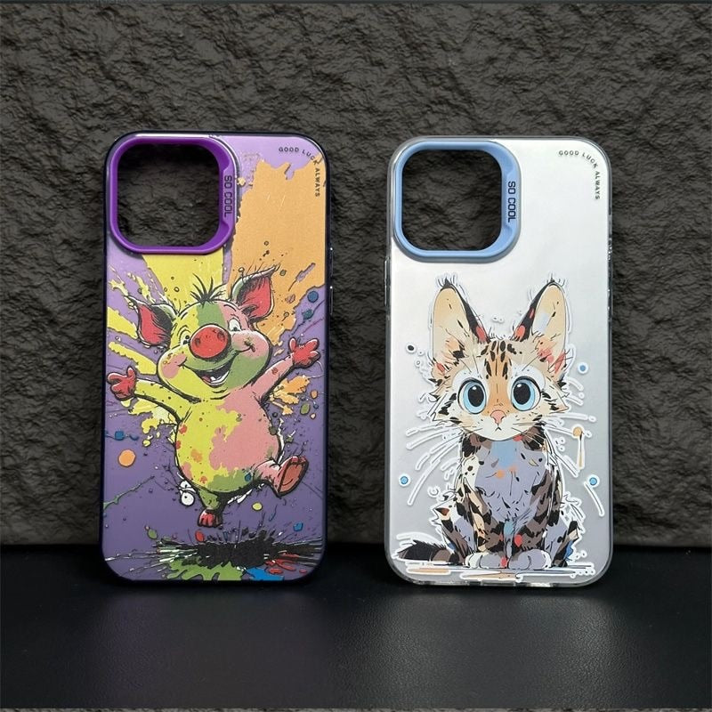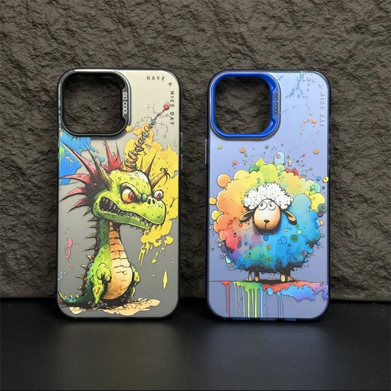 Graffiti Painted Cartoon Animal Soft Silicone Case for iPhone 14 13 12 series
