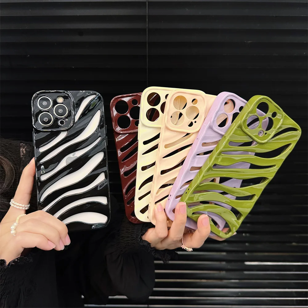 Hollow Heat Dissipation 3D Matte Striped Case for iPhone 14 13 12 series