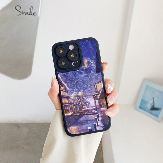 Japanese Anime Street View Scenery Soft Case for iPhone 14 13 12 series