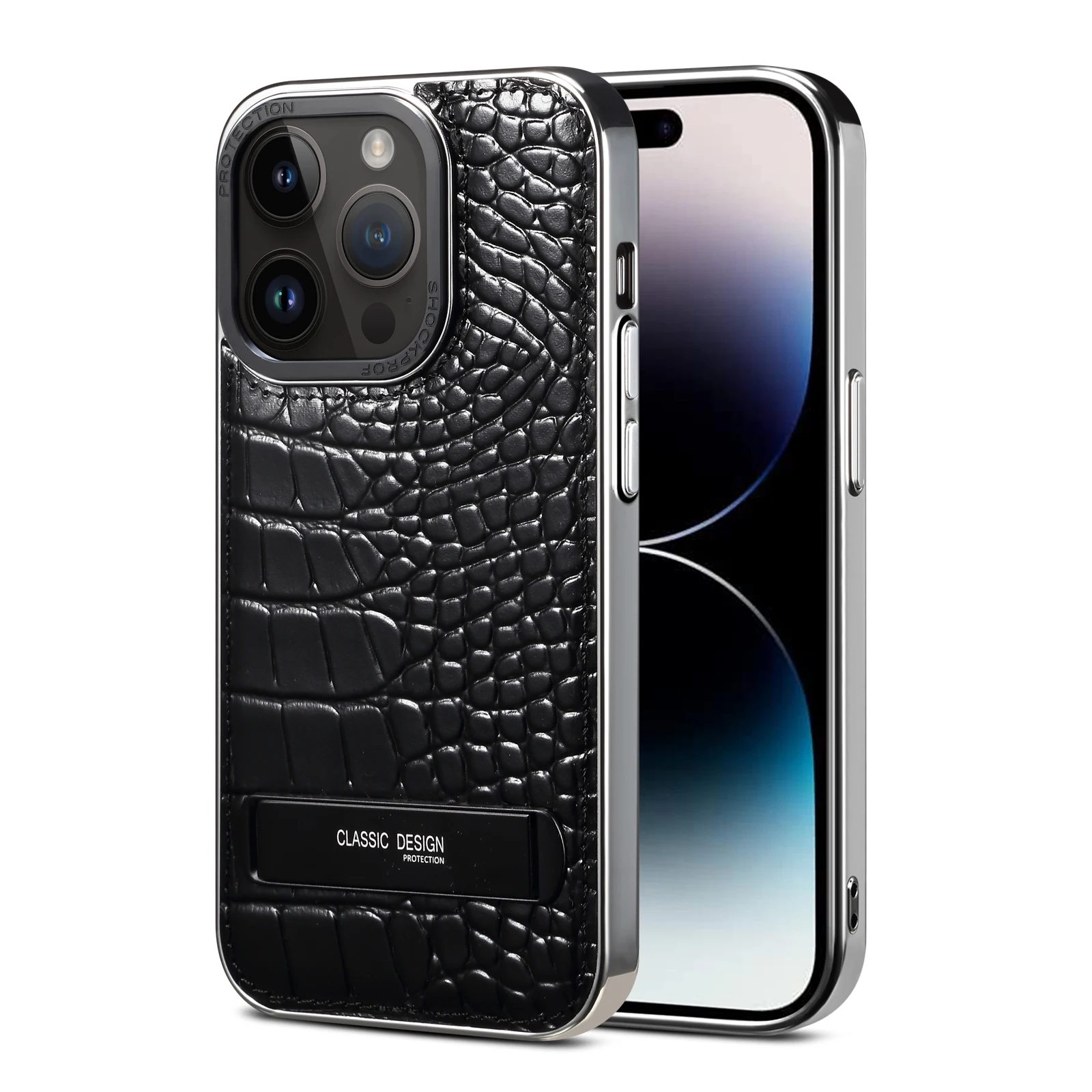 Kickstand Holder Bracket Armor Leather Case for iPhone 15 14 13 series