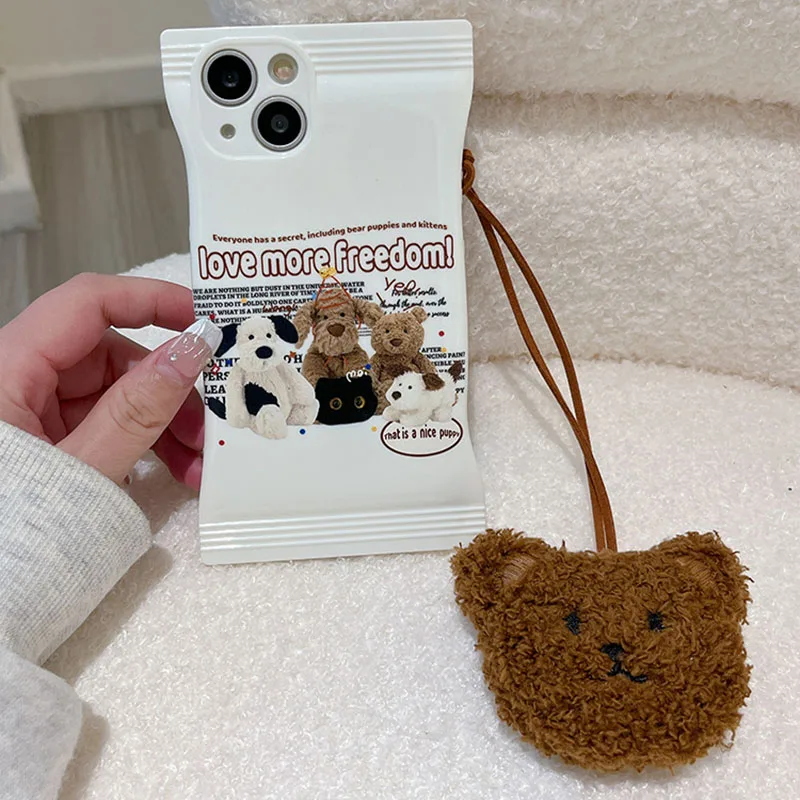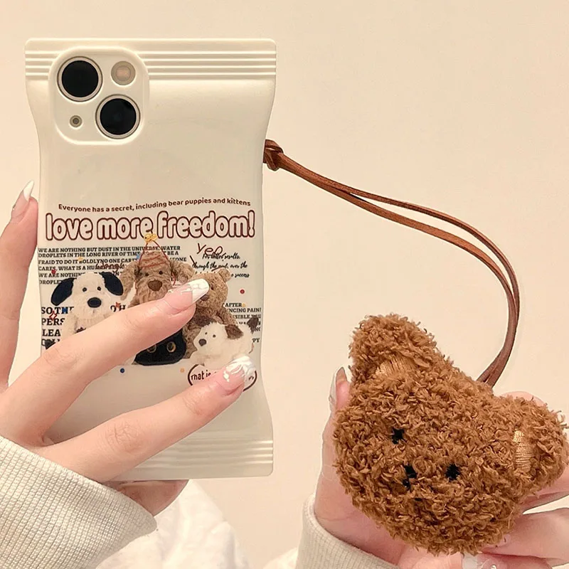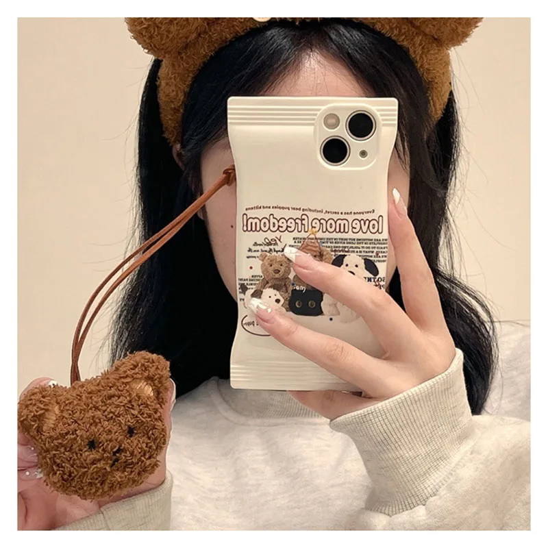 Korean Cartoon Dog Plush Bear Case For iPhone 14 13 12 series