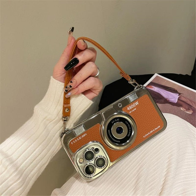 Leather Camera Hand Strap Soft Silicone Case For iPhone 14 13 12 series