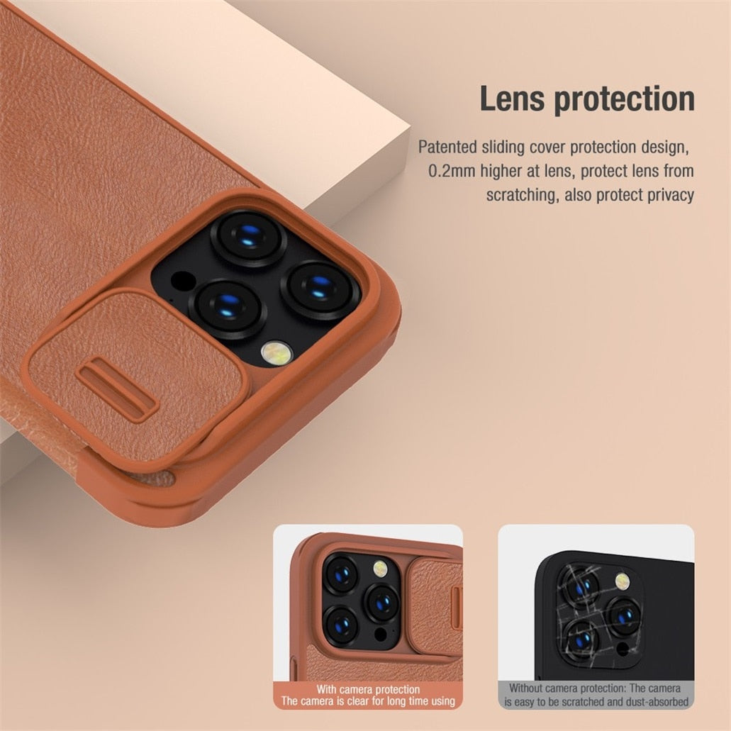 Leather Flip Case with Slide Camera for iPhone 14 series