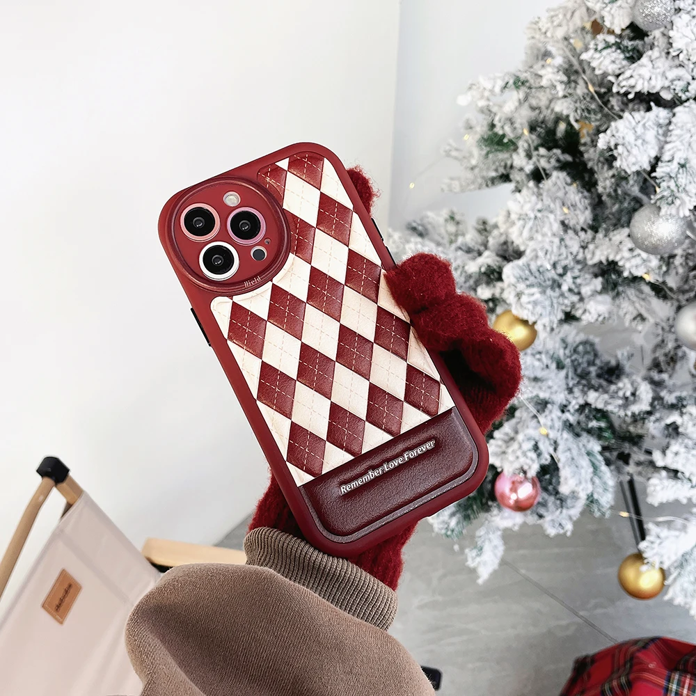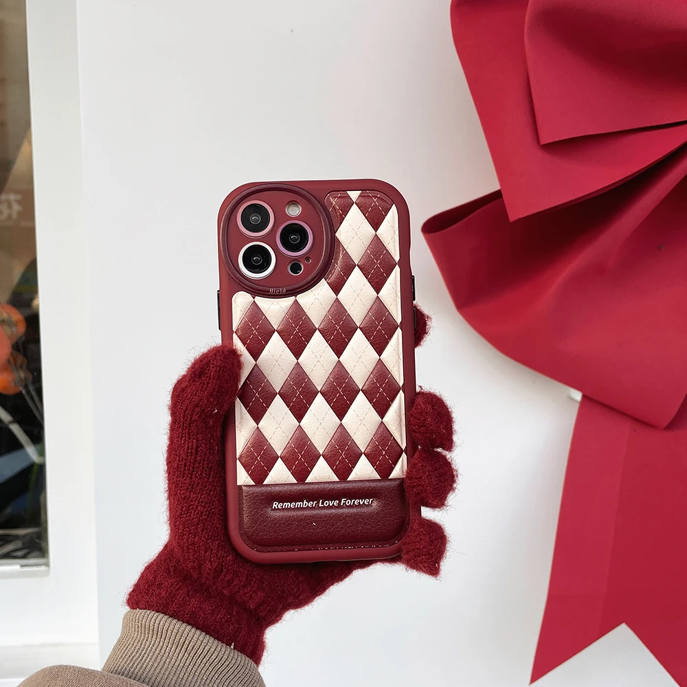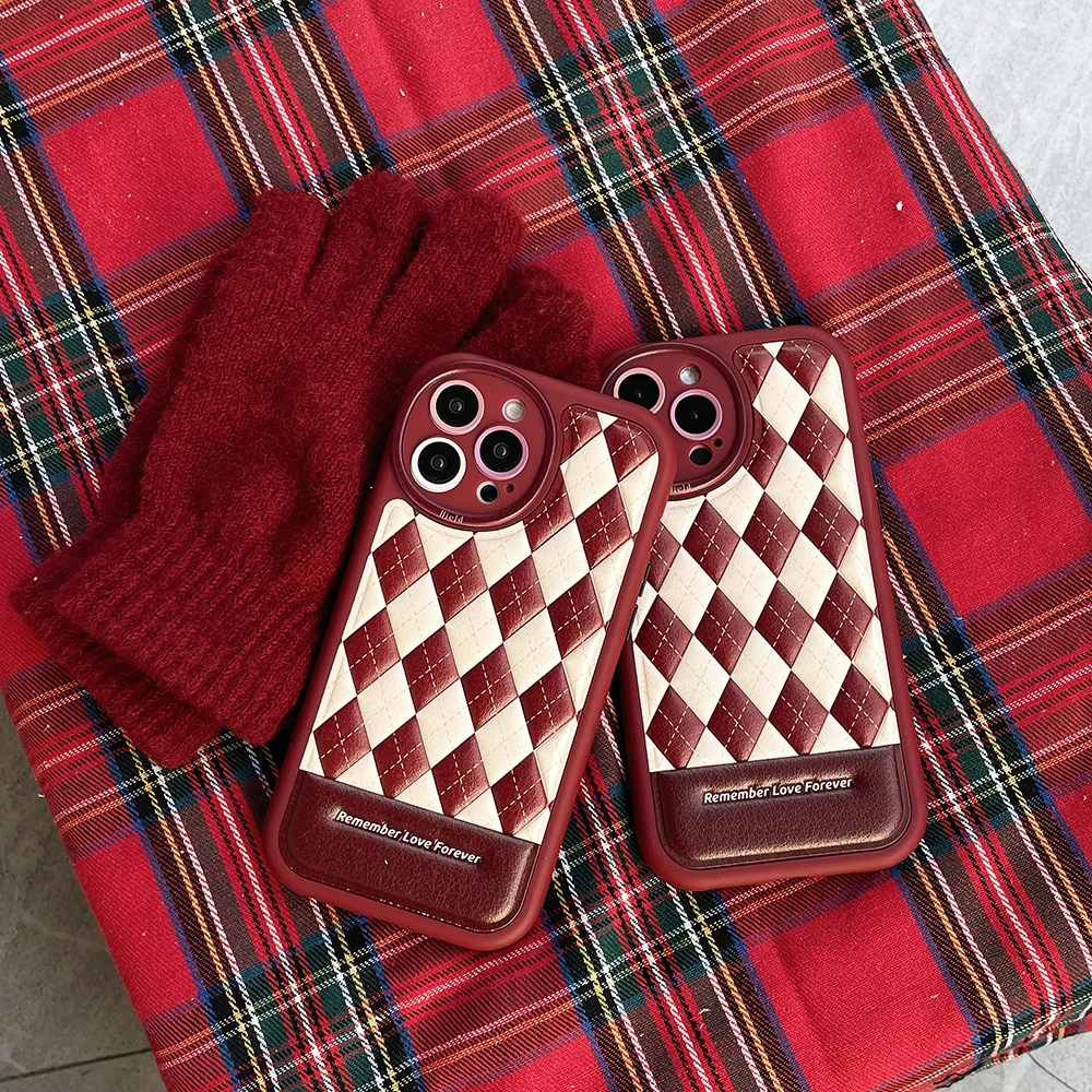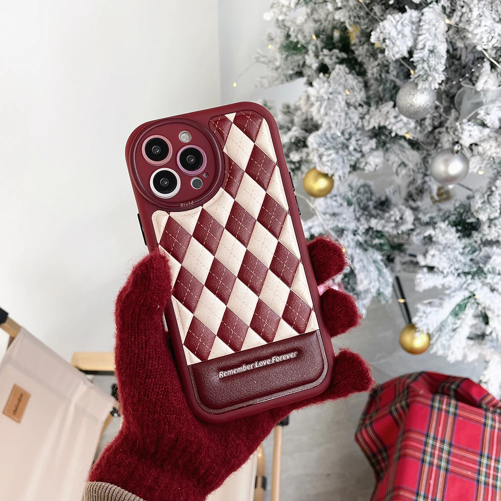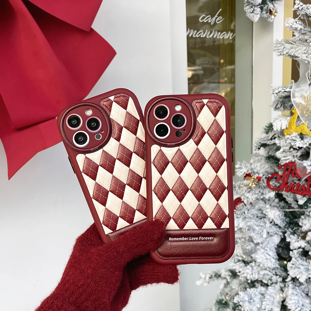 Leather Rhombus Silicone Frame Case For iPhone 14 13 12 series