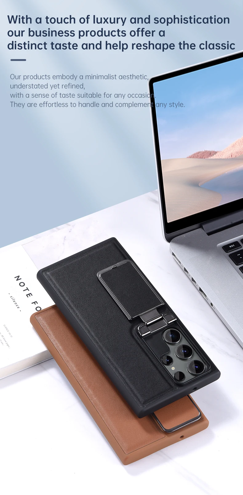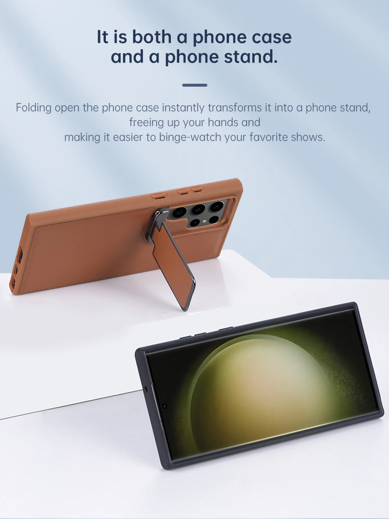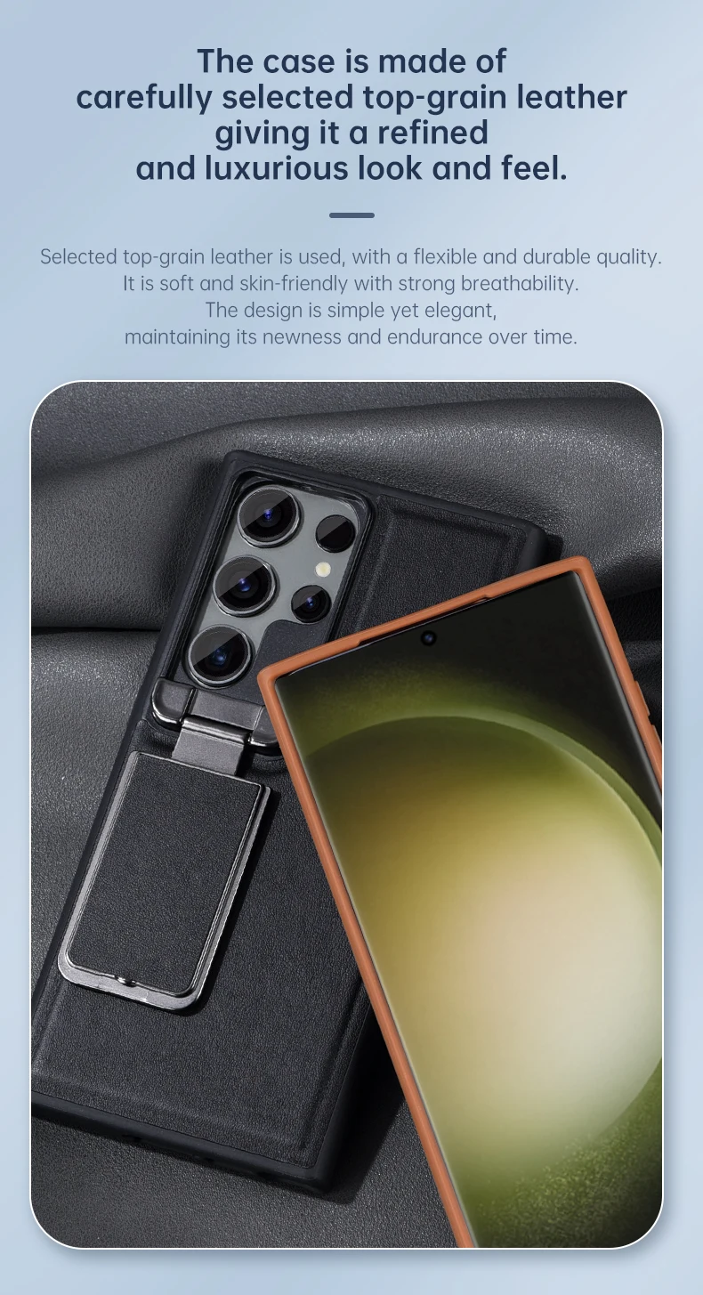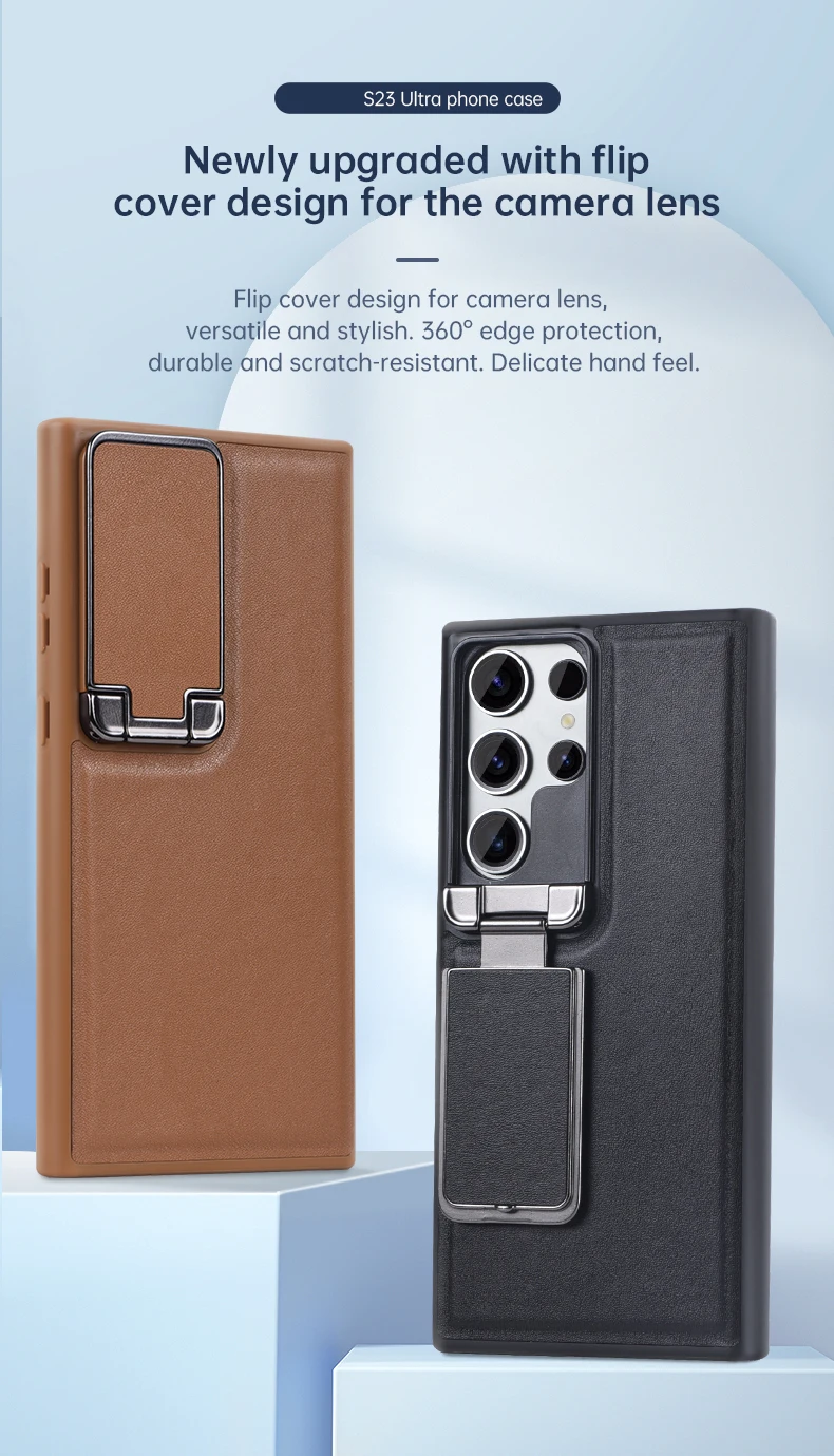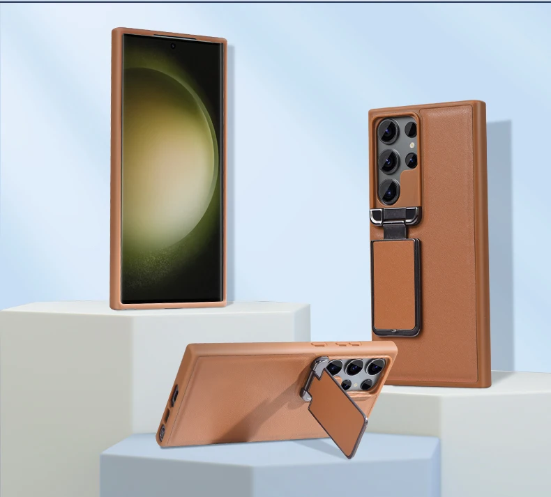 Leather Rubber TPU Shockproof Flip Case with Kickstand for Samsung Galaxy S23 Ultra