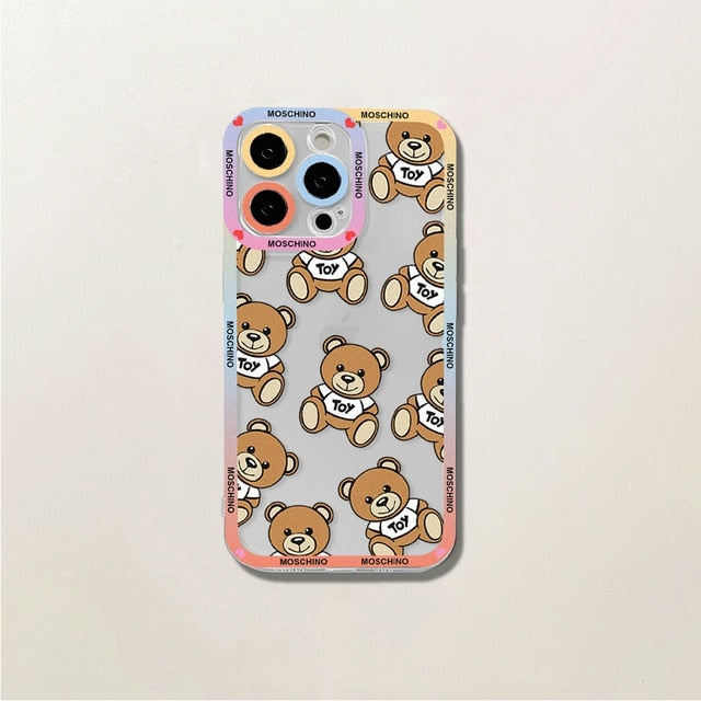 Lovely Bear Cute Cartoon Silicone Clear Case For iPhone 14 13 12 series