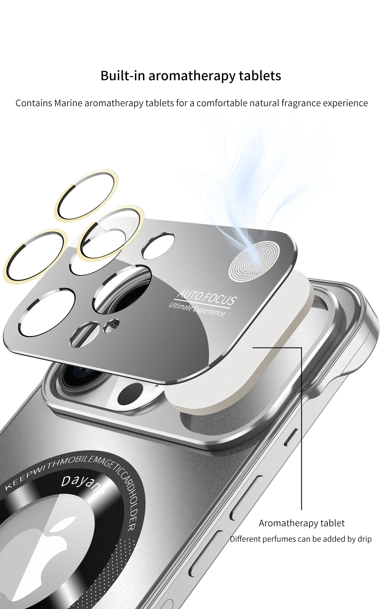 Luxury Aluminum Aromatherapy Metal Lens Protection Rimless Case For iPhone 15 14 13 Series