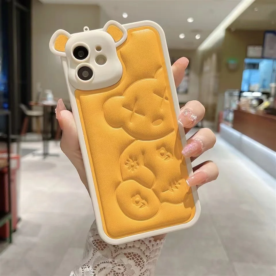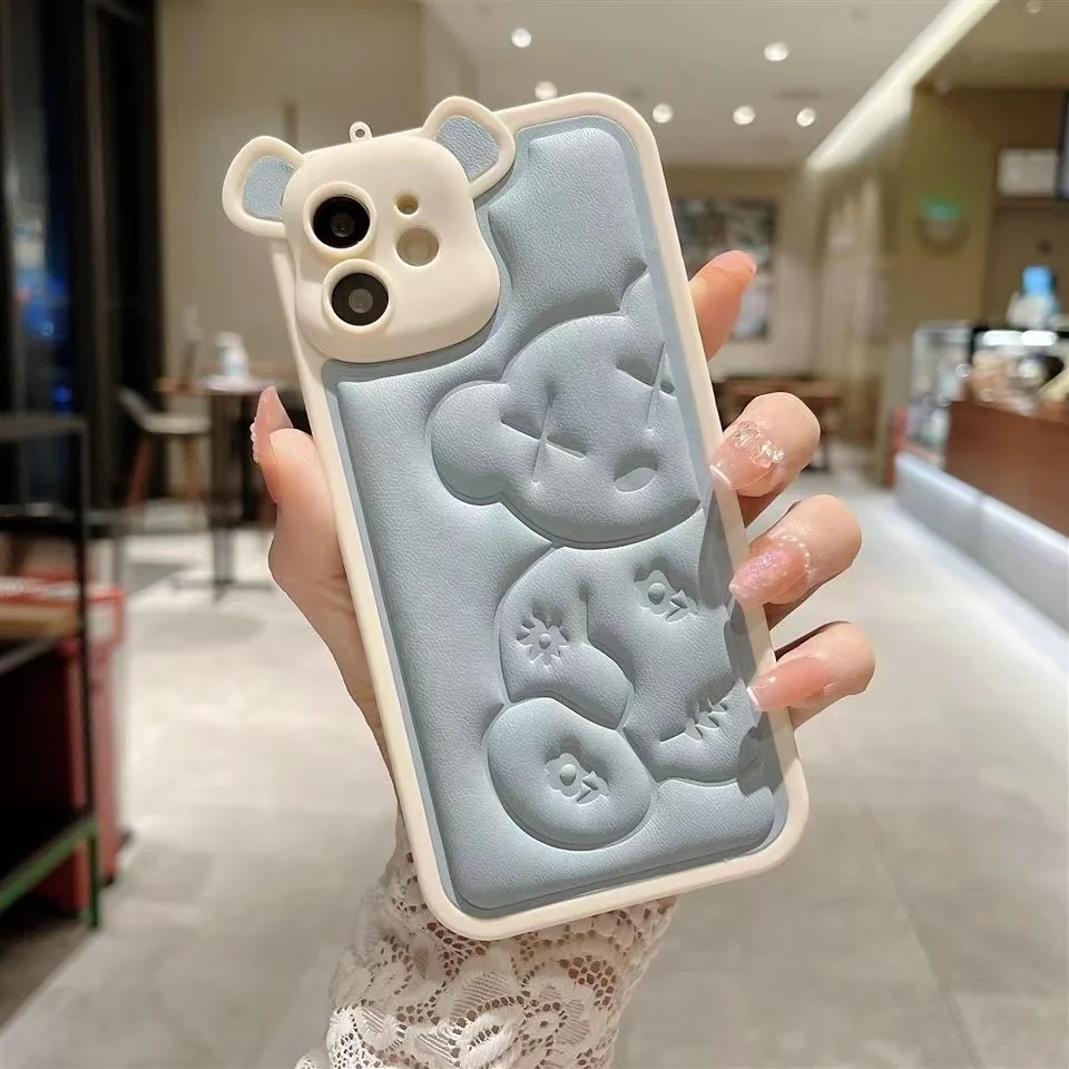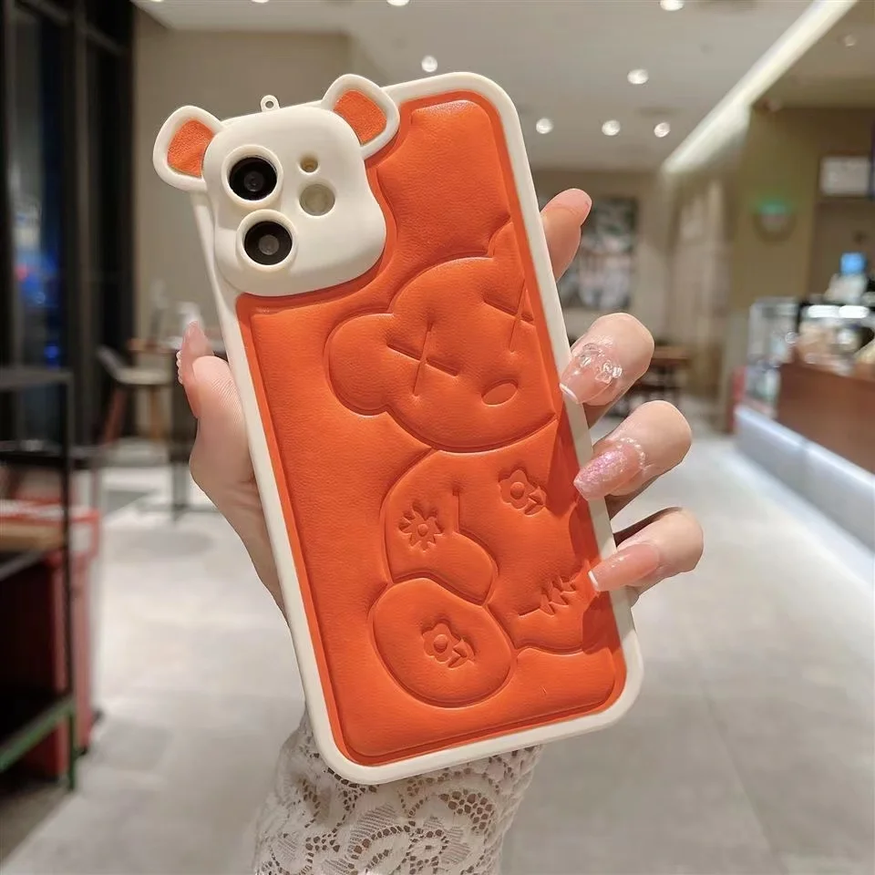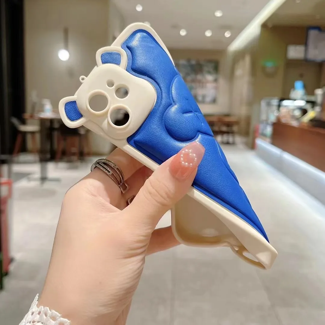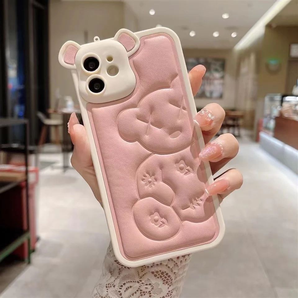 Luxury Bear Camera Soft Leather Case for iPhone 14 13 12 series
