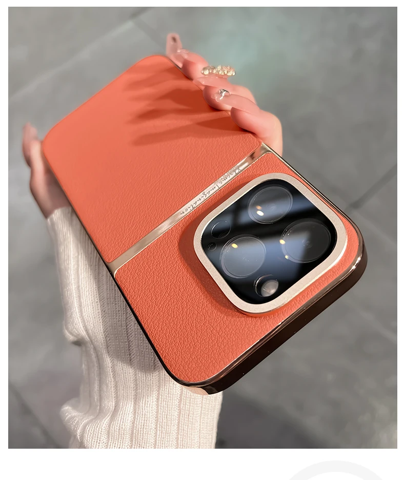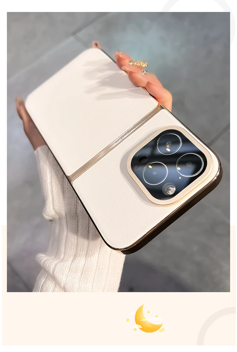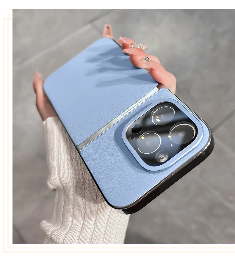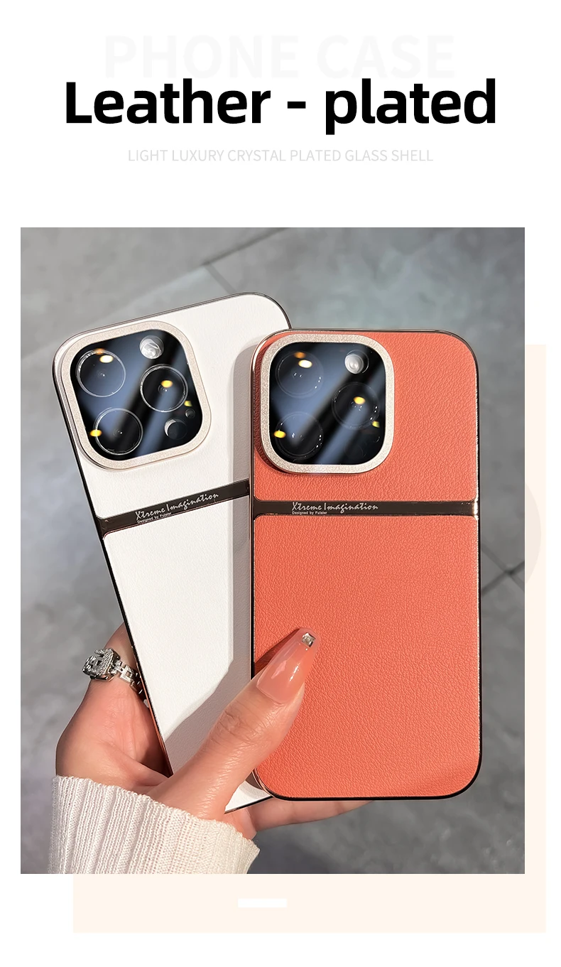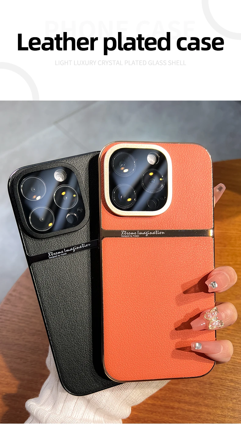 Luxury Bumper Camere Lens Full Protection Plating PU Leather Case For iPhone 14 13 series