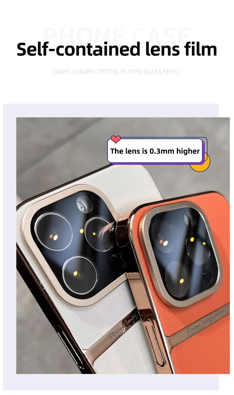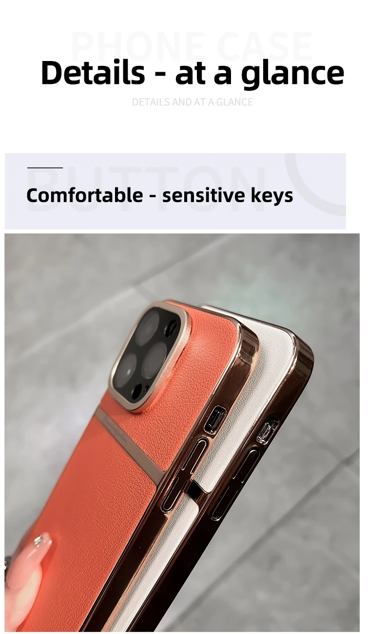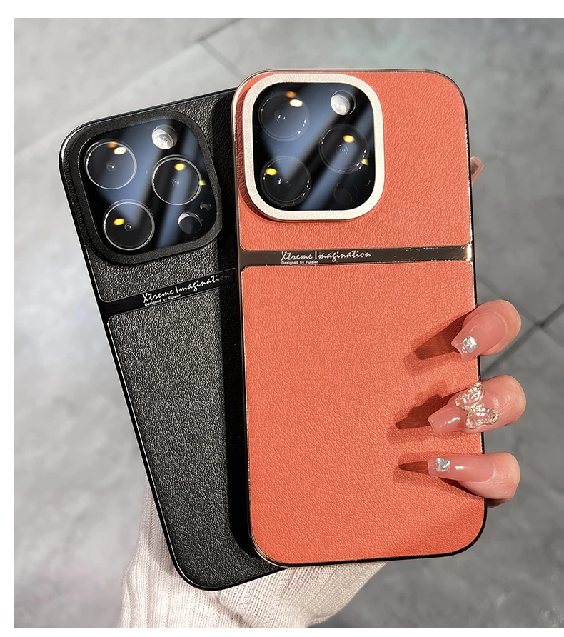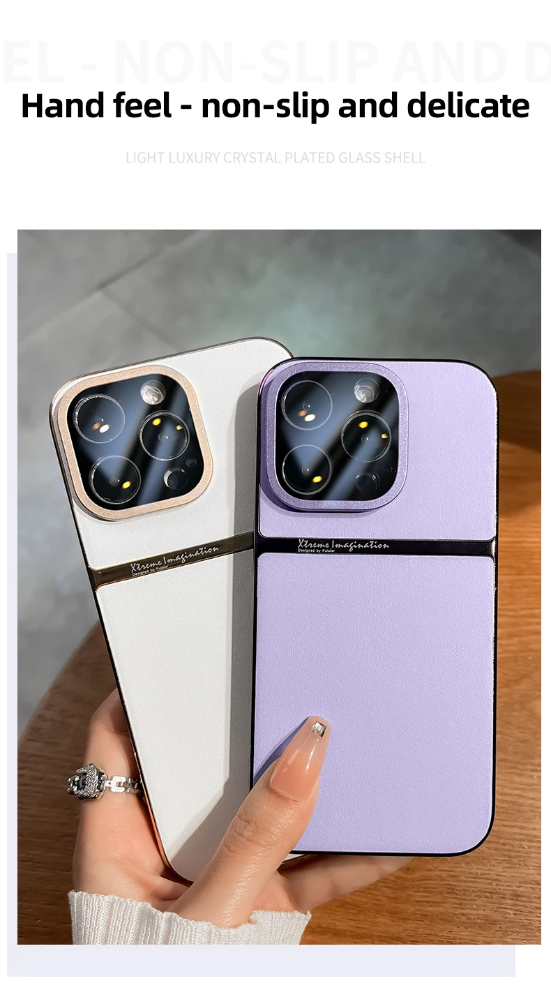 Luxury Bumper Camere Lens Full Protection Plating PU Leather Case For iPhone 14 13 series