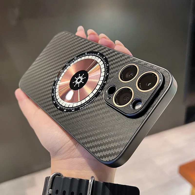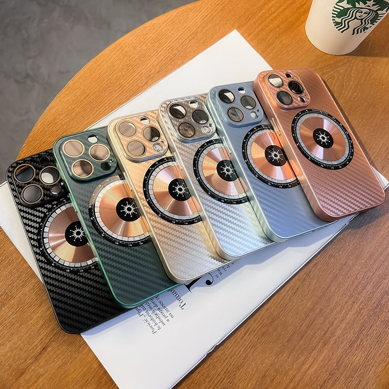 Luxury Carbon Fiber Texture Magsafe Magnetic Lens Glass Protection Case For iPhone 14 13 12 series