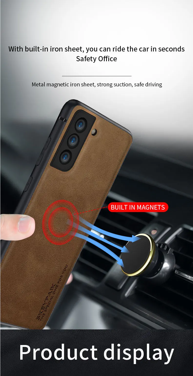 Luxury Carmera Lens Protection Car Magnetic Shockproof PU Leather Phone Case For Samsung S21 Plus Ultra