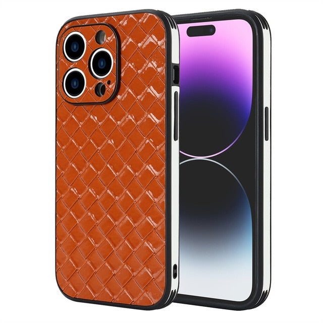 Luxury Chain Weaving Leather Shockproof Soft Case For iPhone 14 13 12 series