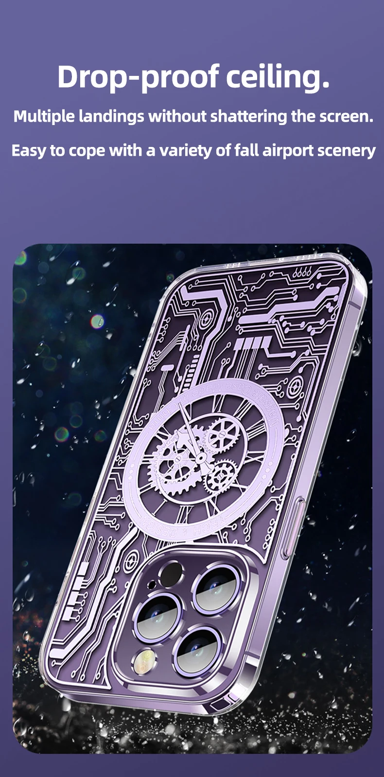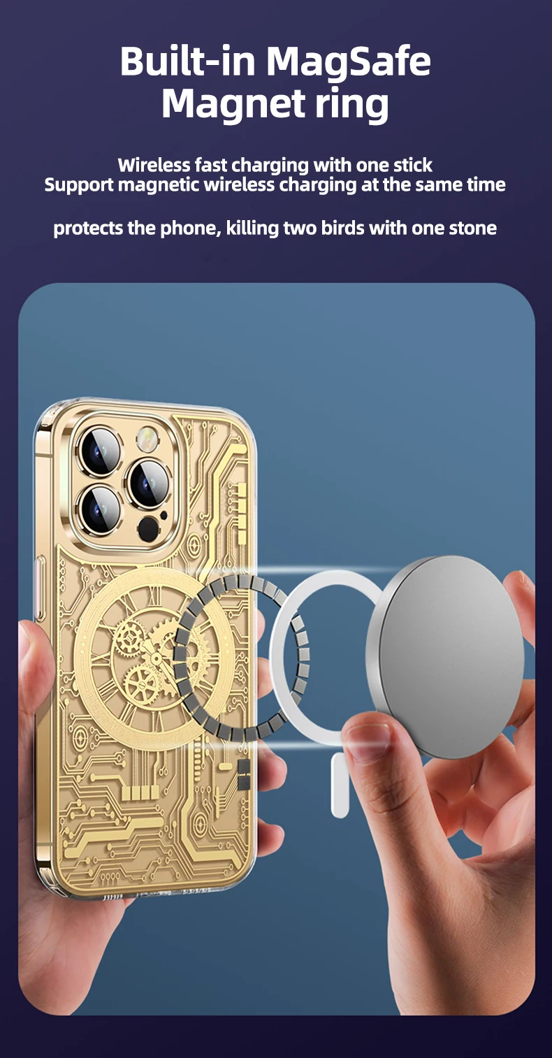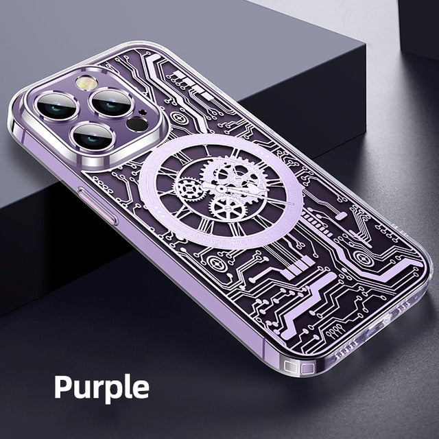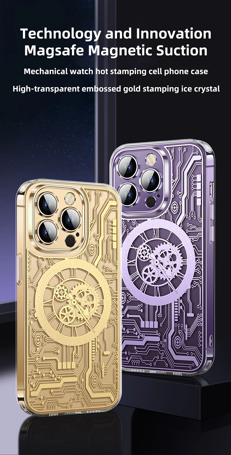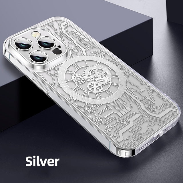 Luxury Clear Mechanical Watch Transparent Lens Protection Magsafe Magnetic Case For iPhone 14 13 12 series