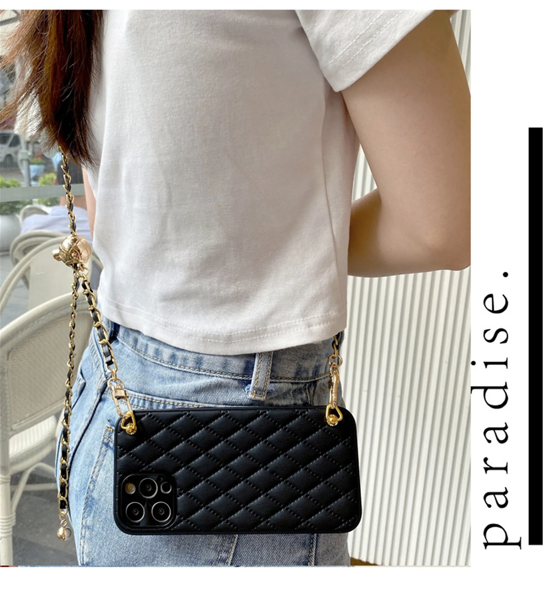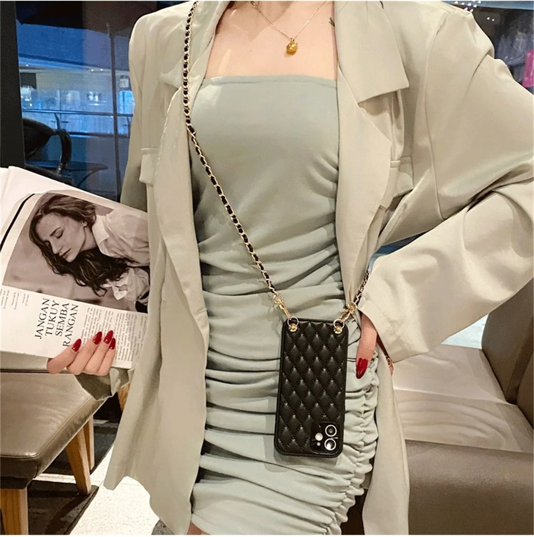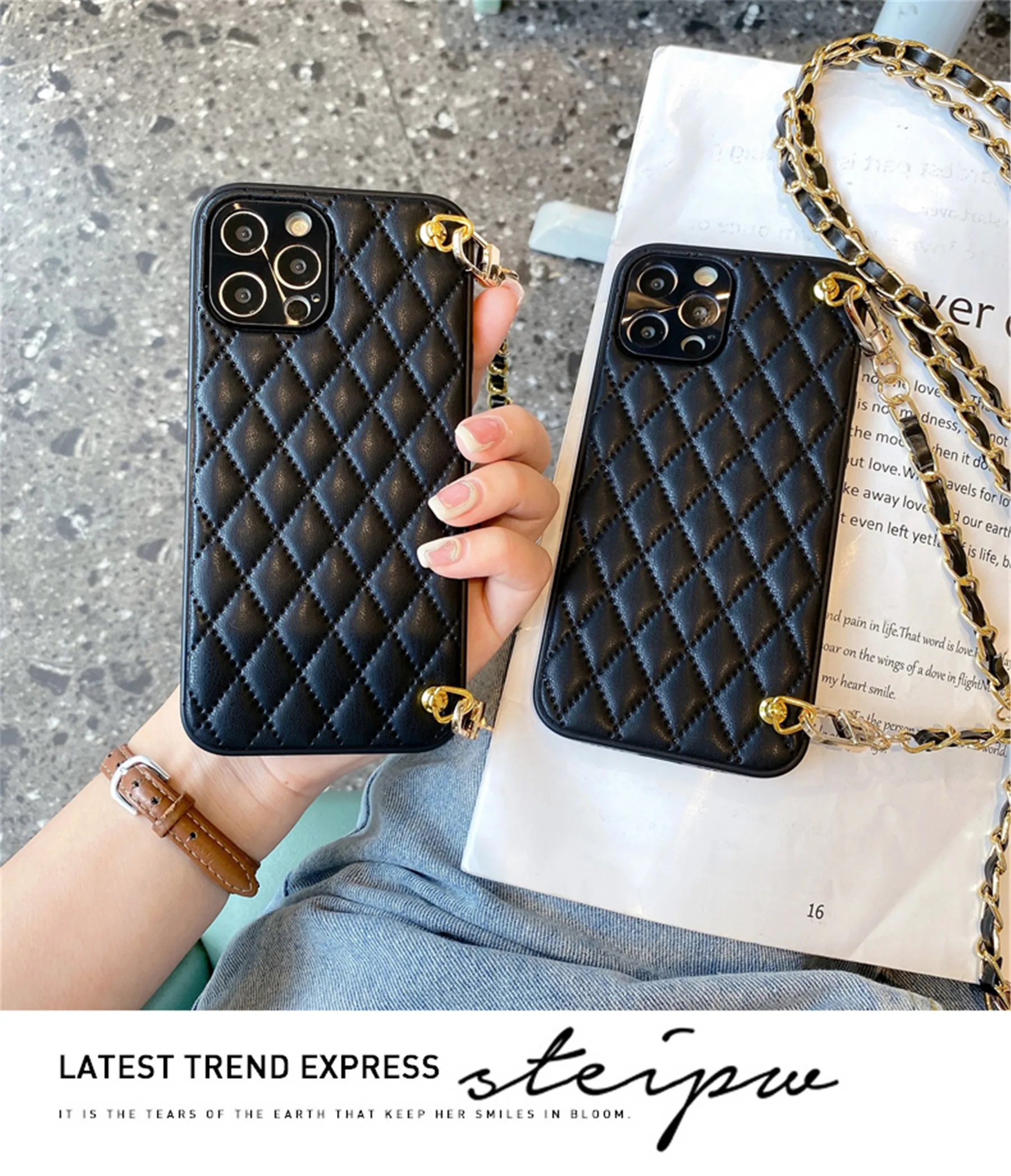Luxury Crossbody Leather Lanyard Chain Rhombus Case for iPhone 13 12 11 Pro Max