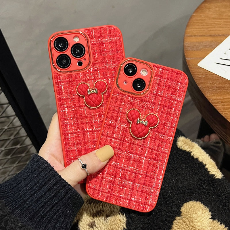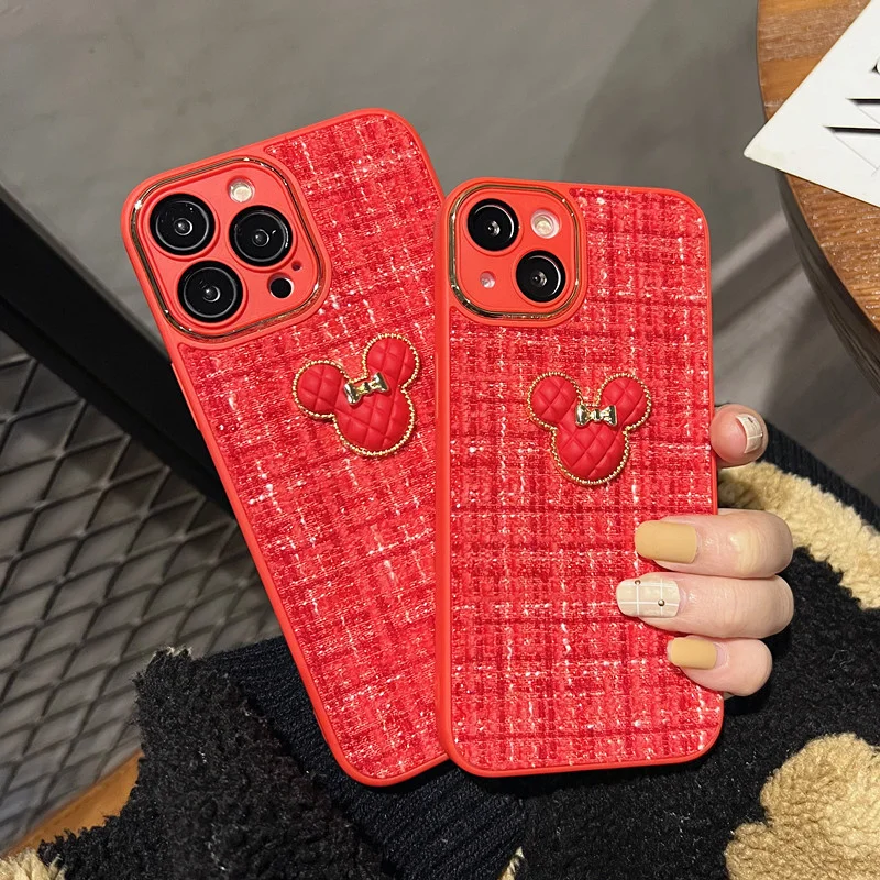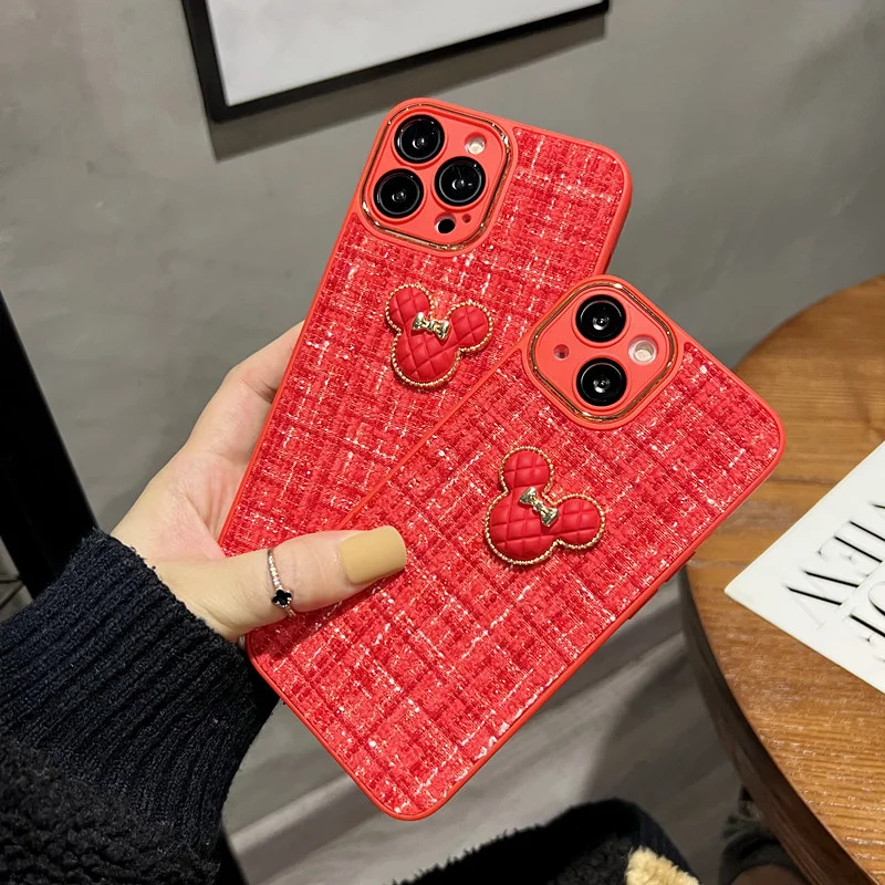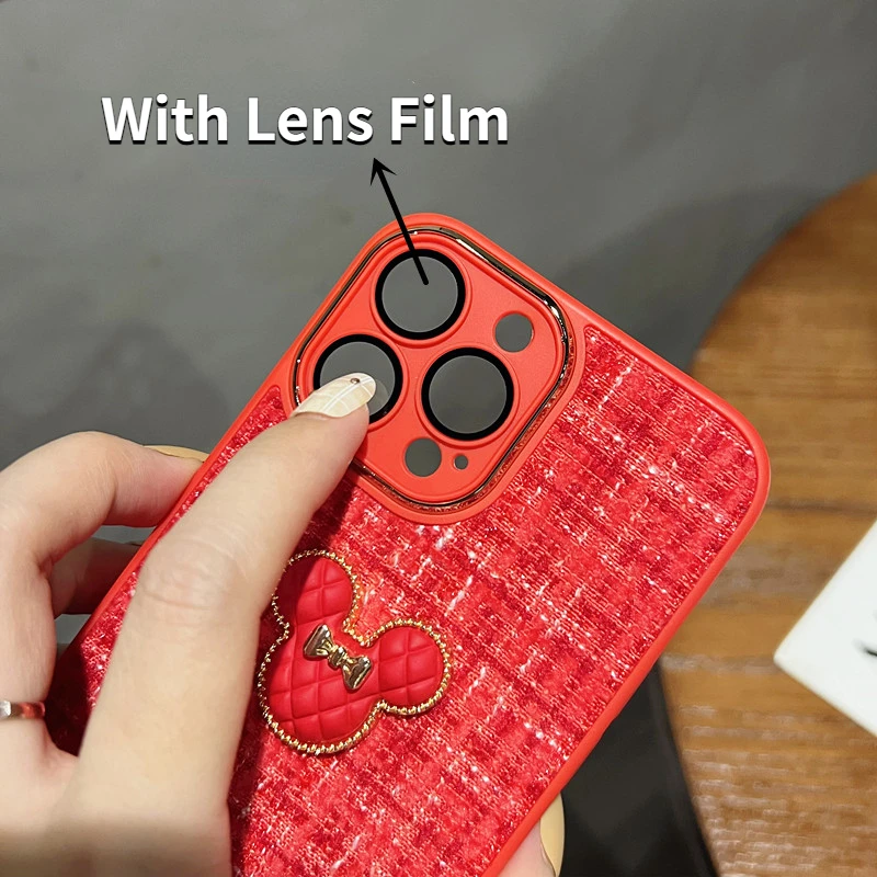 Luxury Fabric Cute 3D Cartoon Pattern Case With Lens Film For iPhone 14 13 12 series