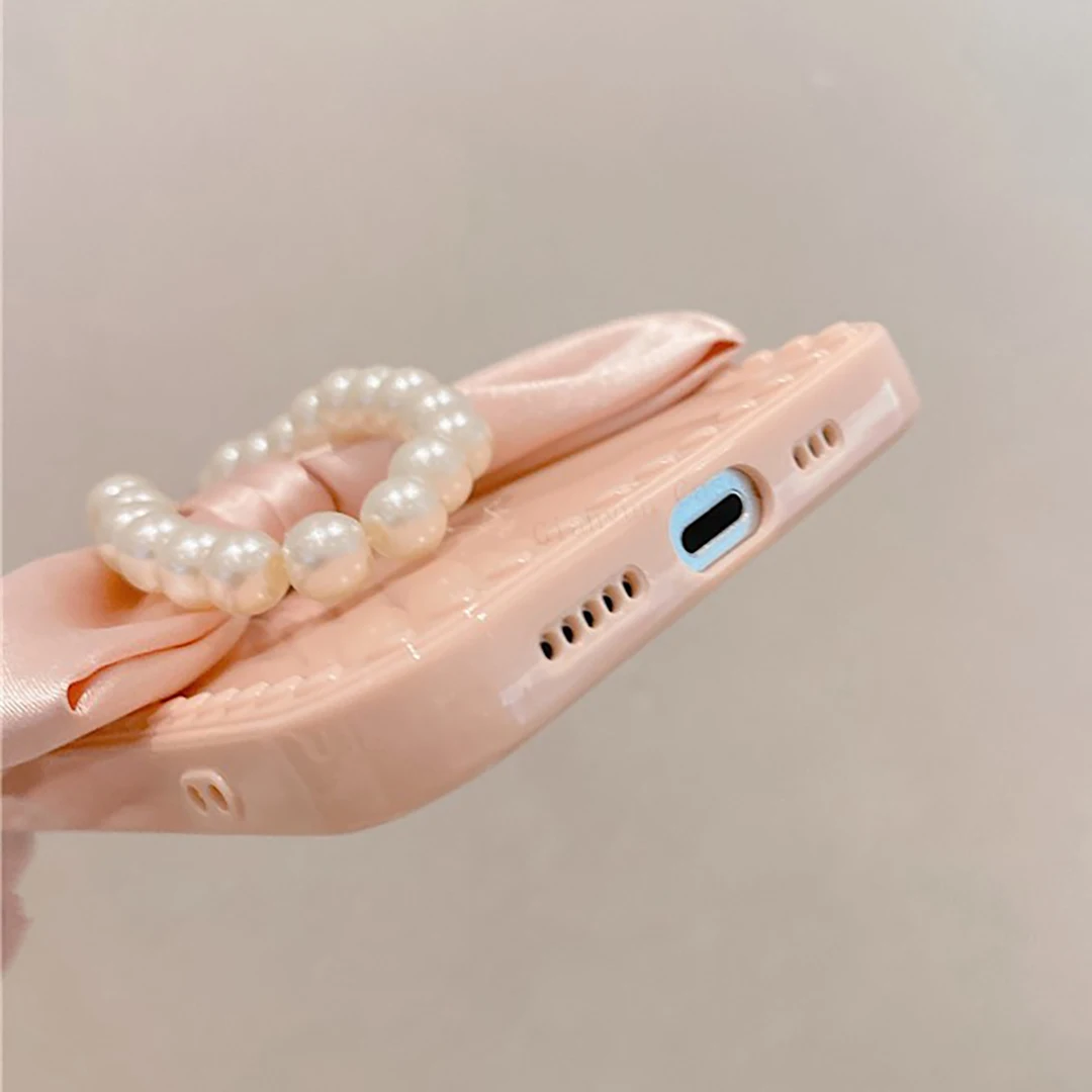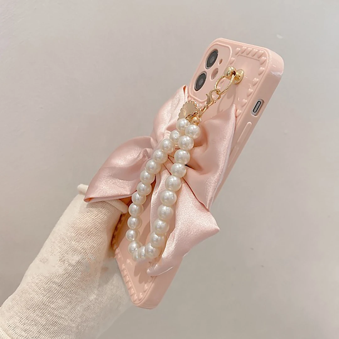 Luxury Fashion Pearl Bracelet Bow Case for iPhone 13 11 12 Pro Max Mini