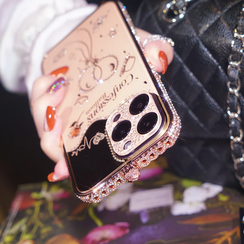Luxury Flash Drilling Metal Frame Case For iPhone 14 13 12 series
