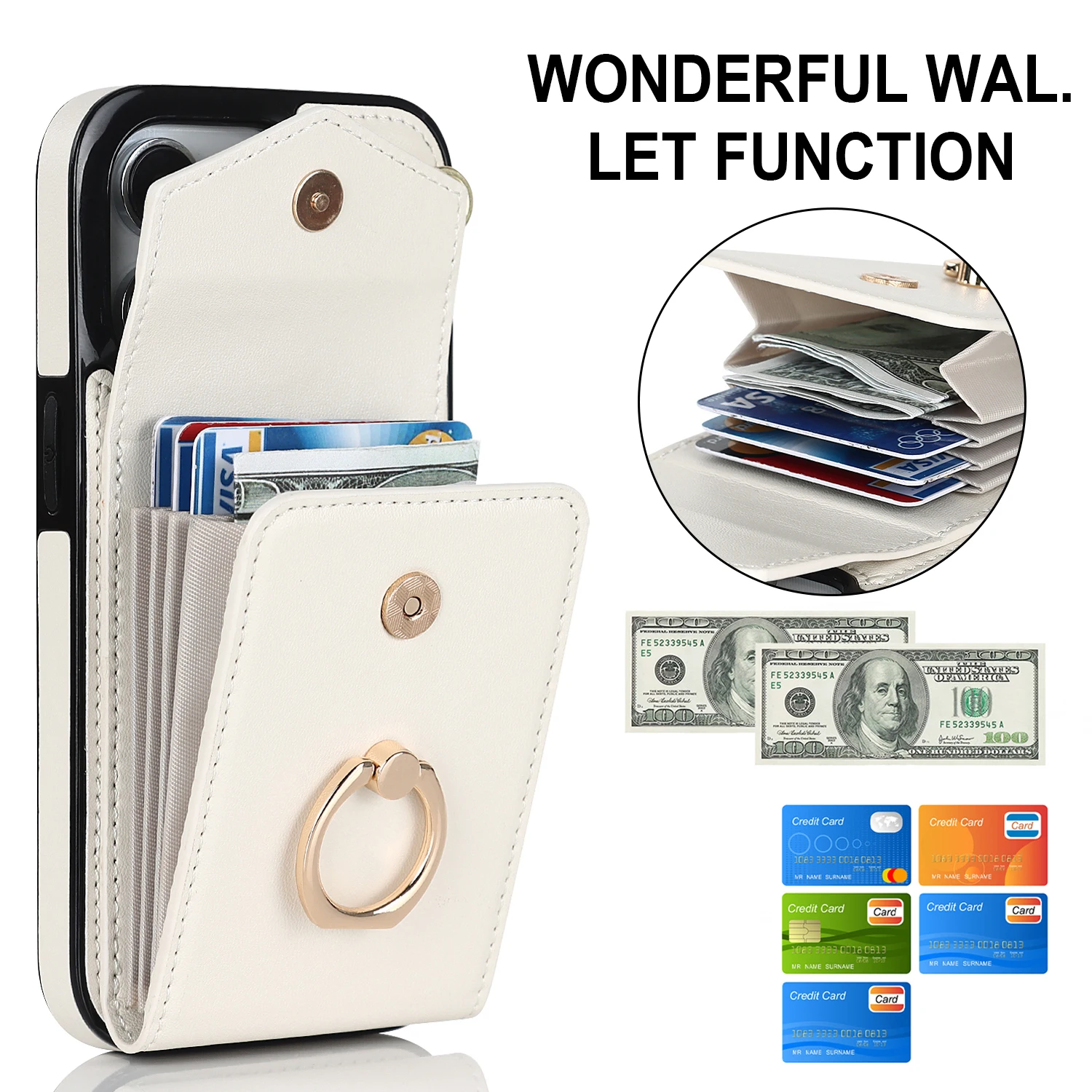 Luxury Flip Wallet Leather Case with Hand Held Rope For iPhone 14 13 12 series