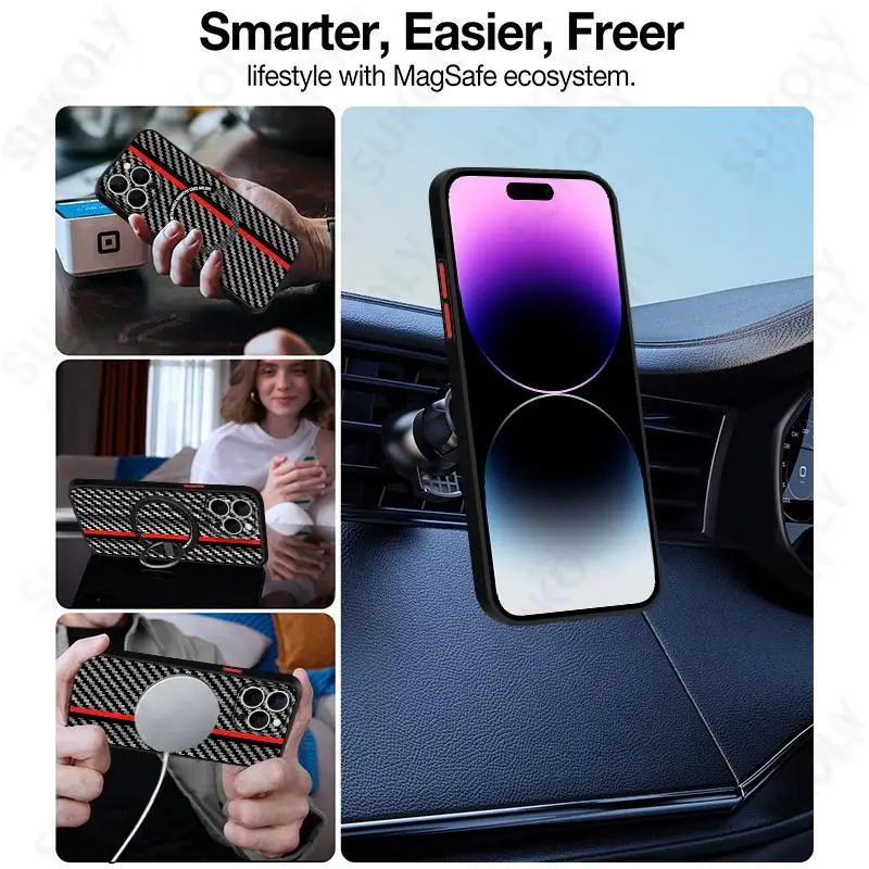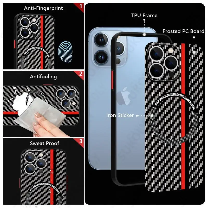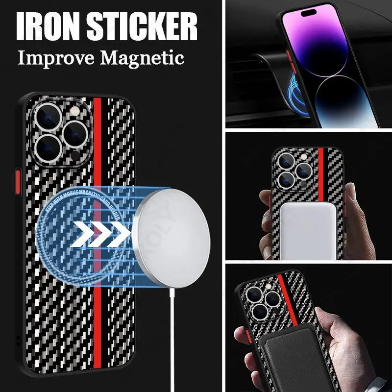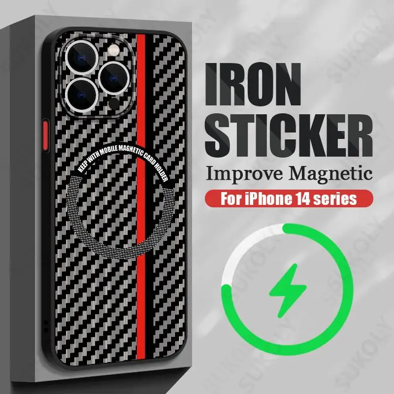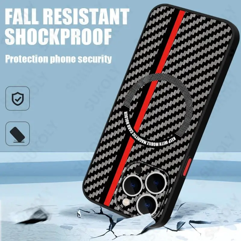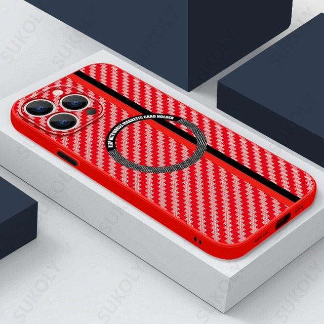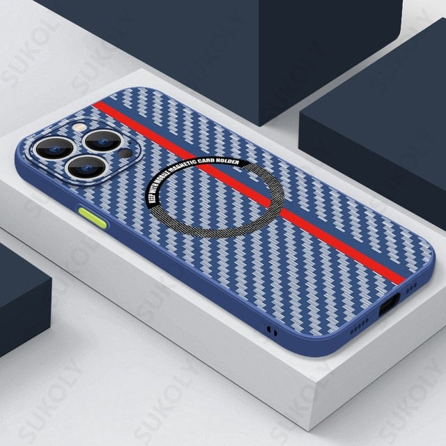 Luxury For Magsafe Charging Shockproof Carbon Fiber Pattern Case For iPhone 14 13 12 series