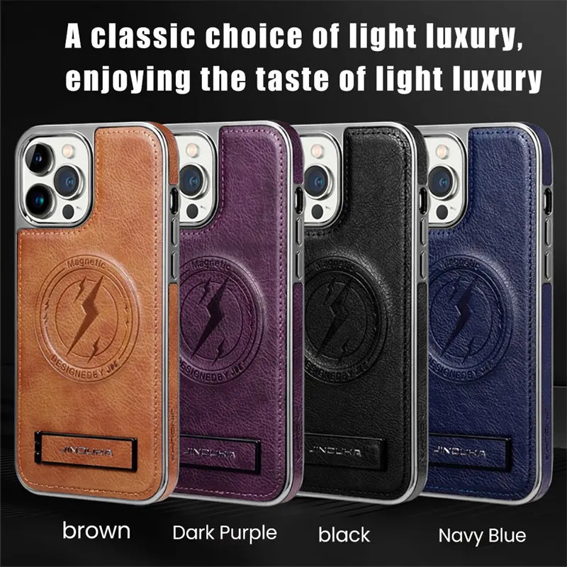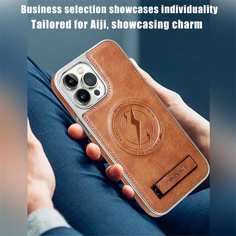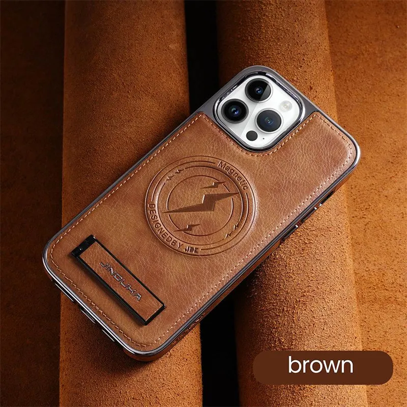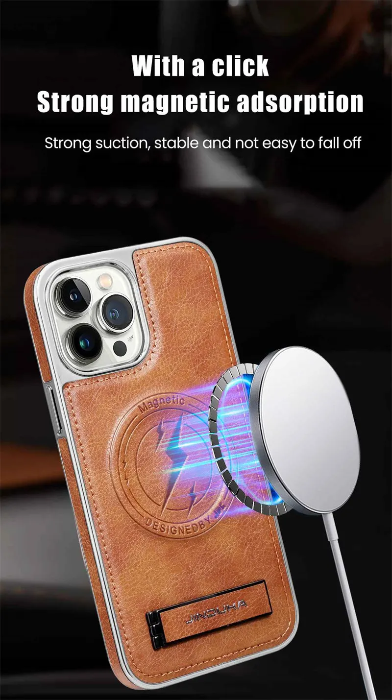 Luxury Leather Magnetic Wireless Charging Folding Bracket Shockproof Soft Case For iPhone 15 14 13 12 series
