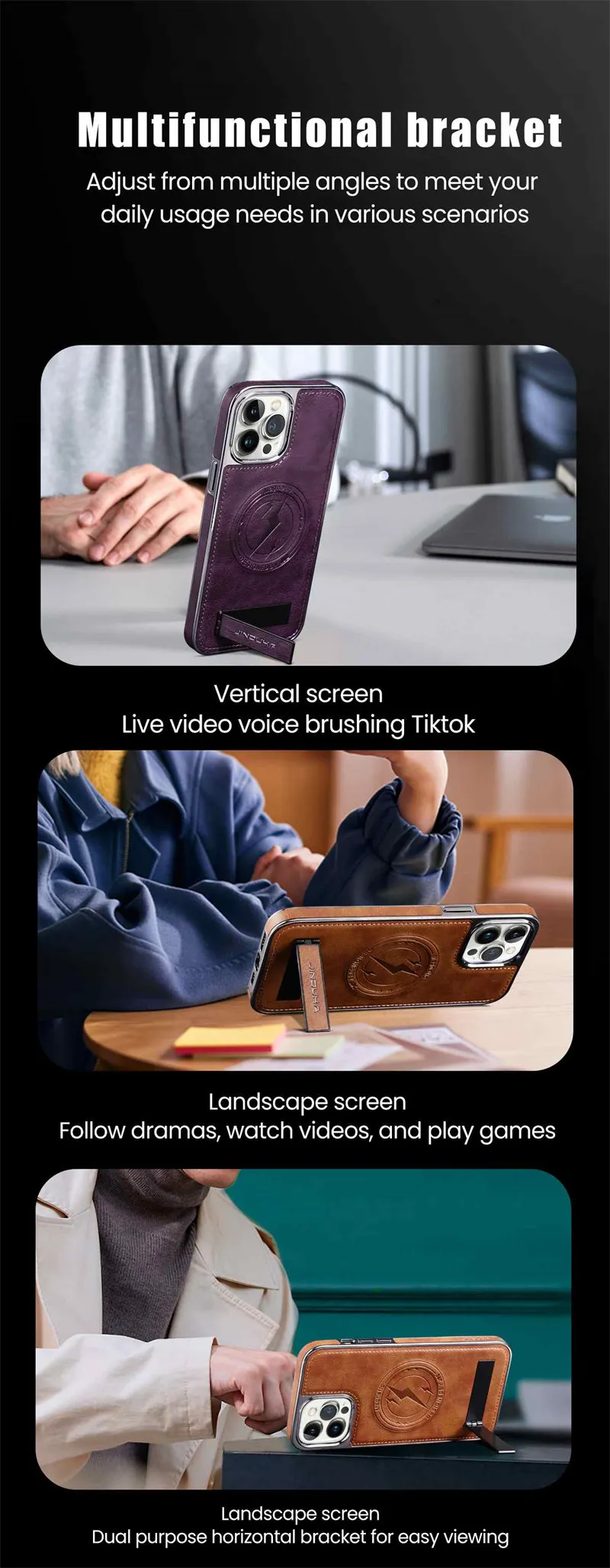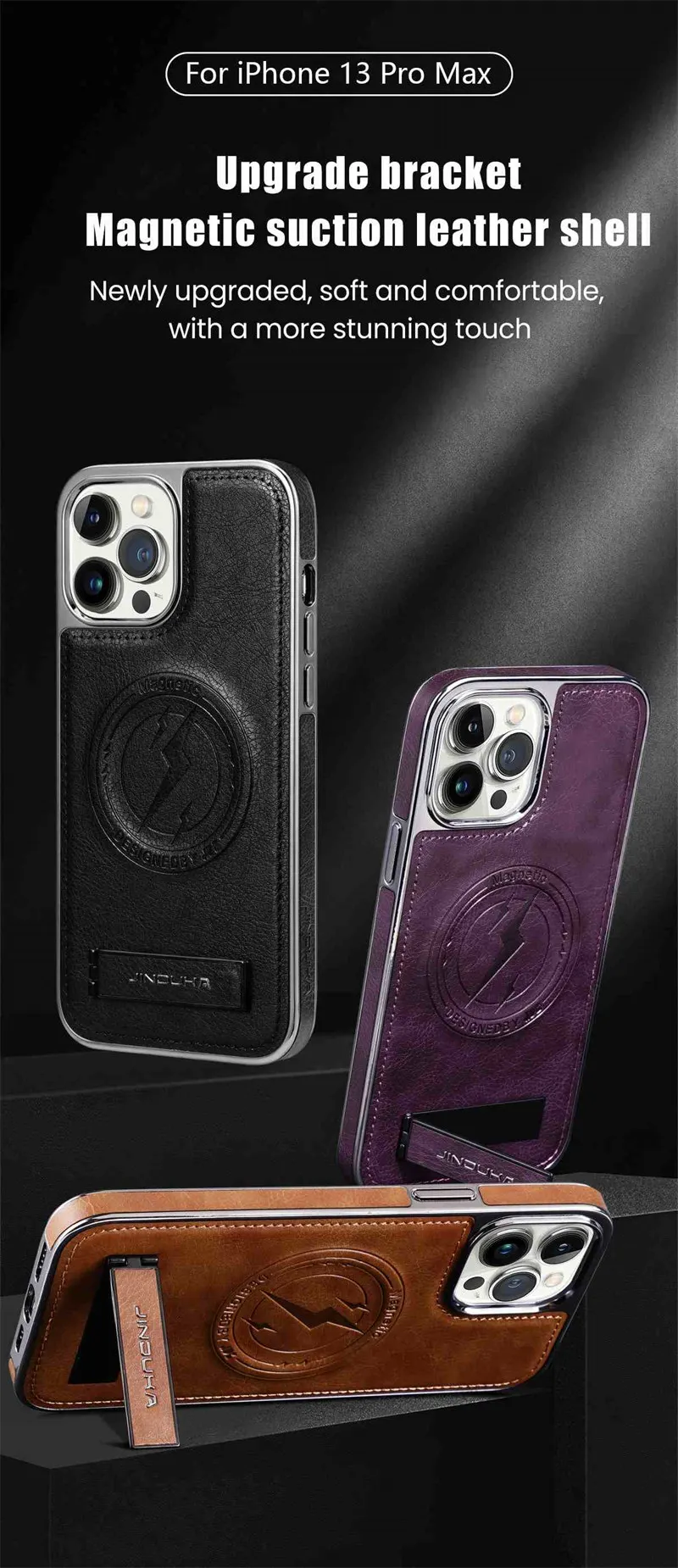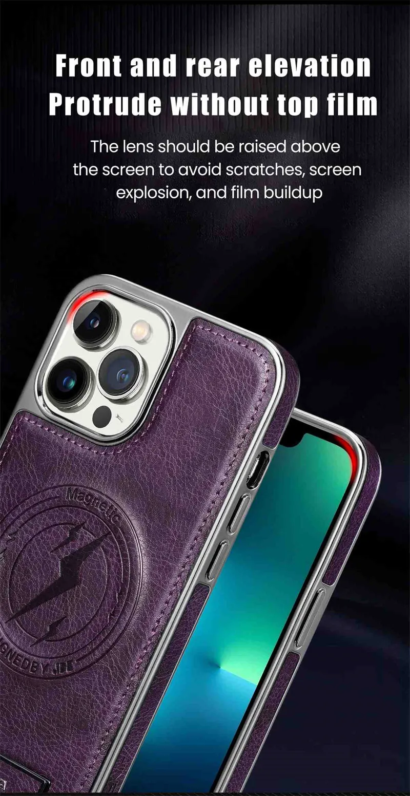 Luxury Leather Magnetic Wireless Charging Folding Bracket Shockproof Soft Case For iPhone 15 14 13 12 series