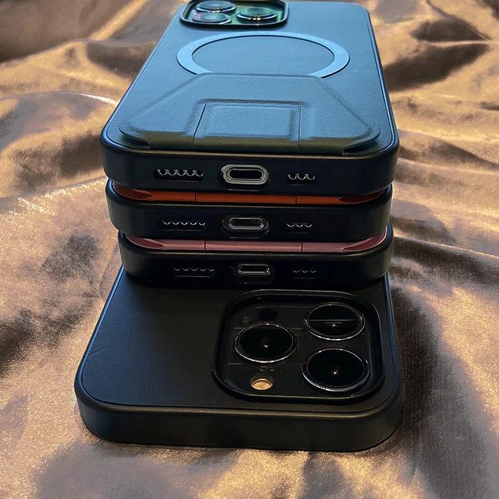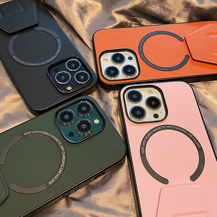 Luxury Leather Magsafe Hidden Stand Bracket Case for iPhone 13 12 Pro Max