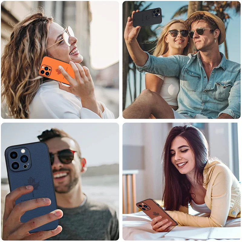 Luxury Leather Maple Leaf Texture Camera Lens Case for iPhone 13 12 11 Pro Max Mini