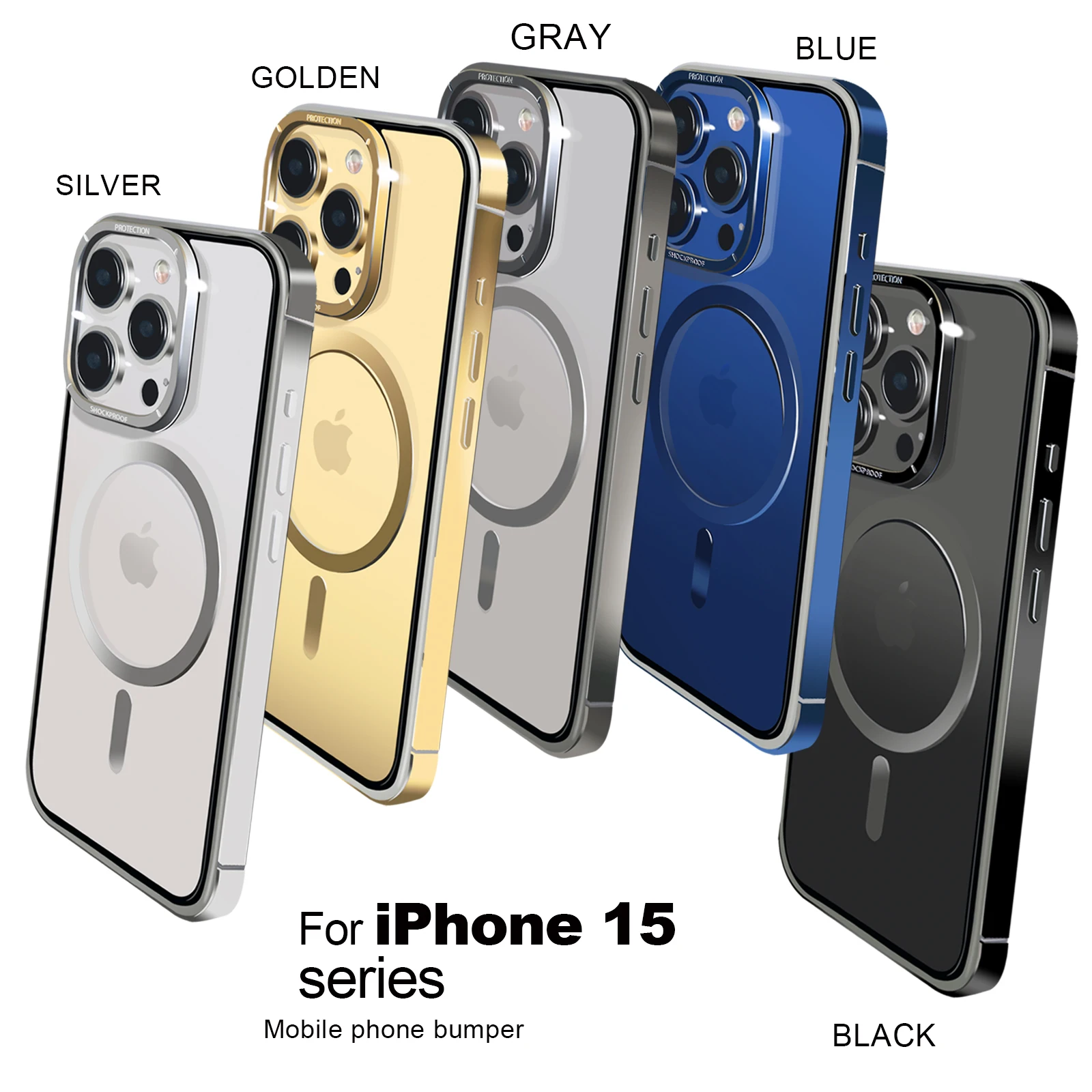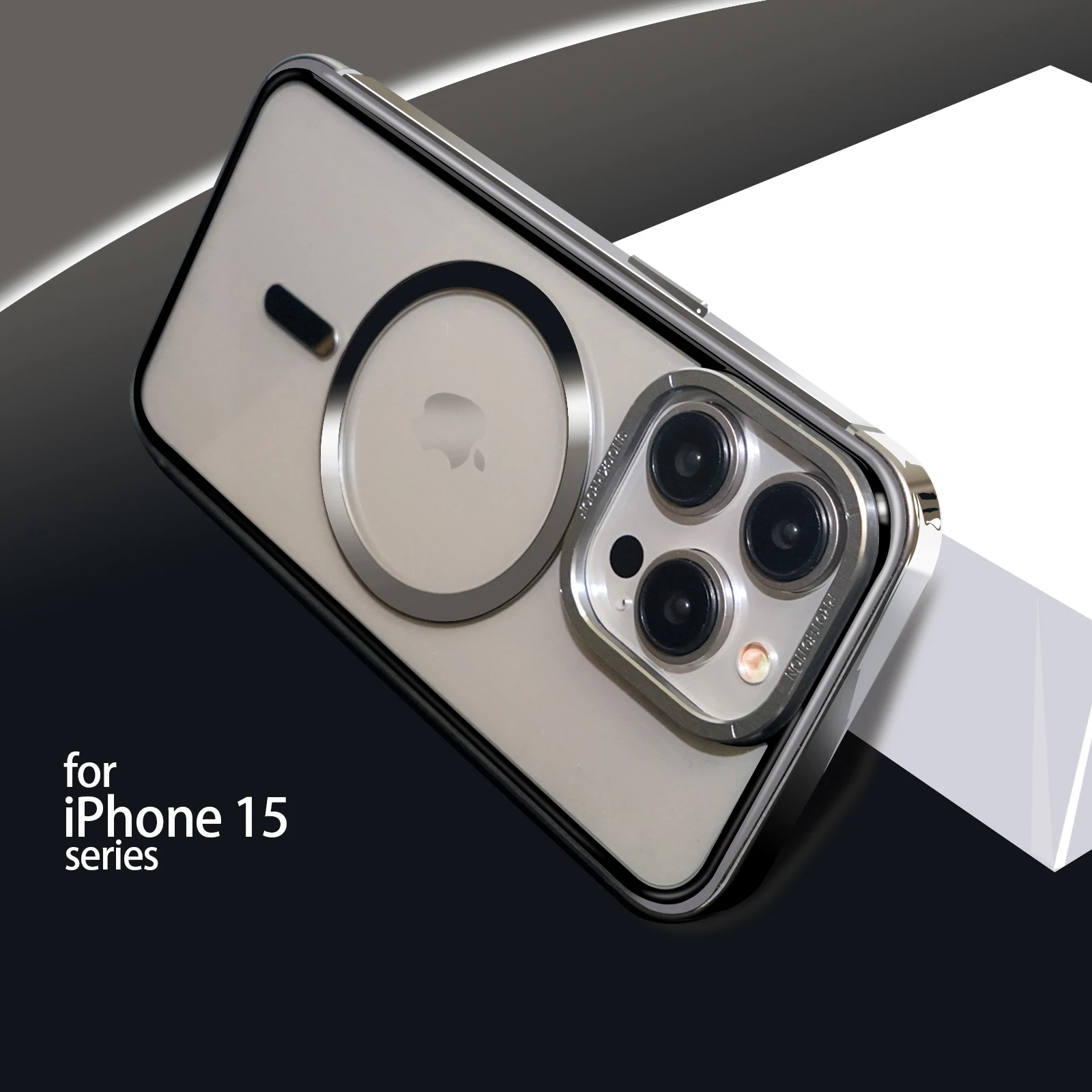 Luxury Magsafe Magnetic Metal Frame Transparent Case For iPhone 15 series