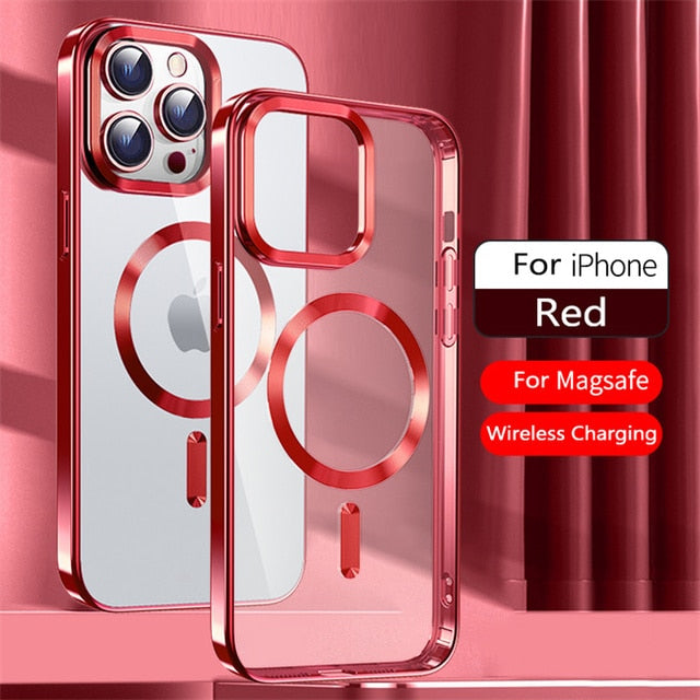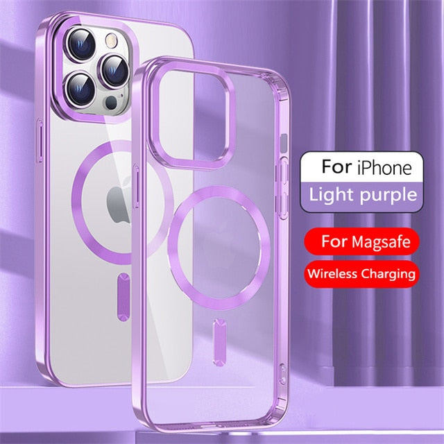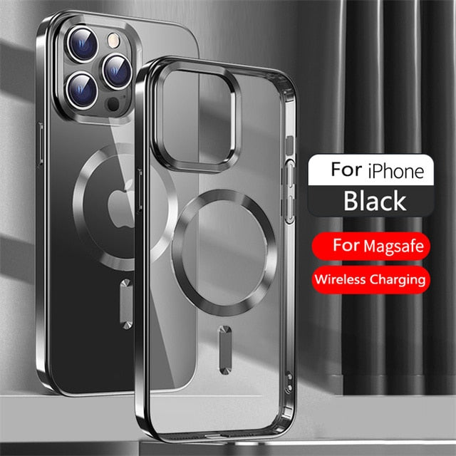 Luxury Magsafe Magnetic Wireless Charging Clear Silicone Case For iPhone 14 13 12 series