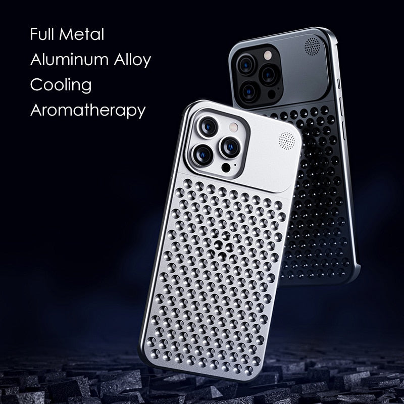 Luxury Metal Cooling Hollow Aluminum Alloy Rimless Shockproof Case For iPhone 14 13 series