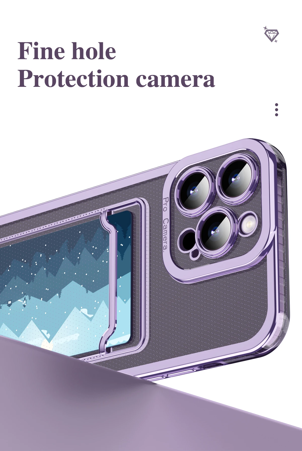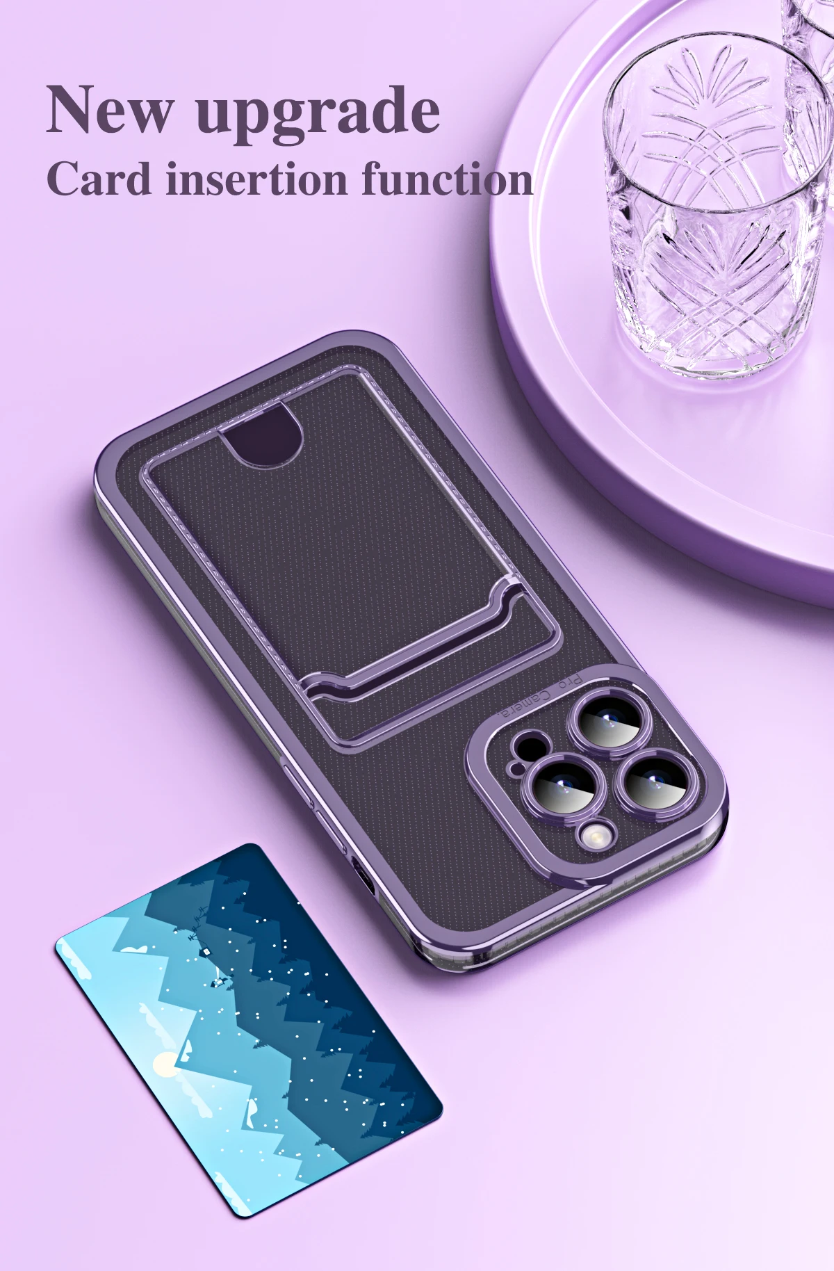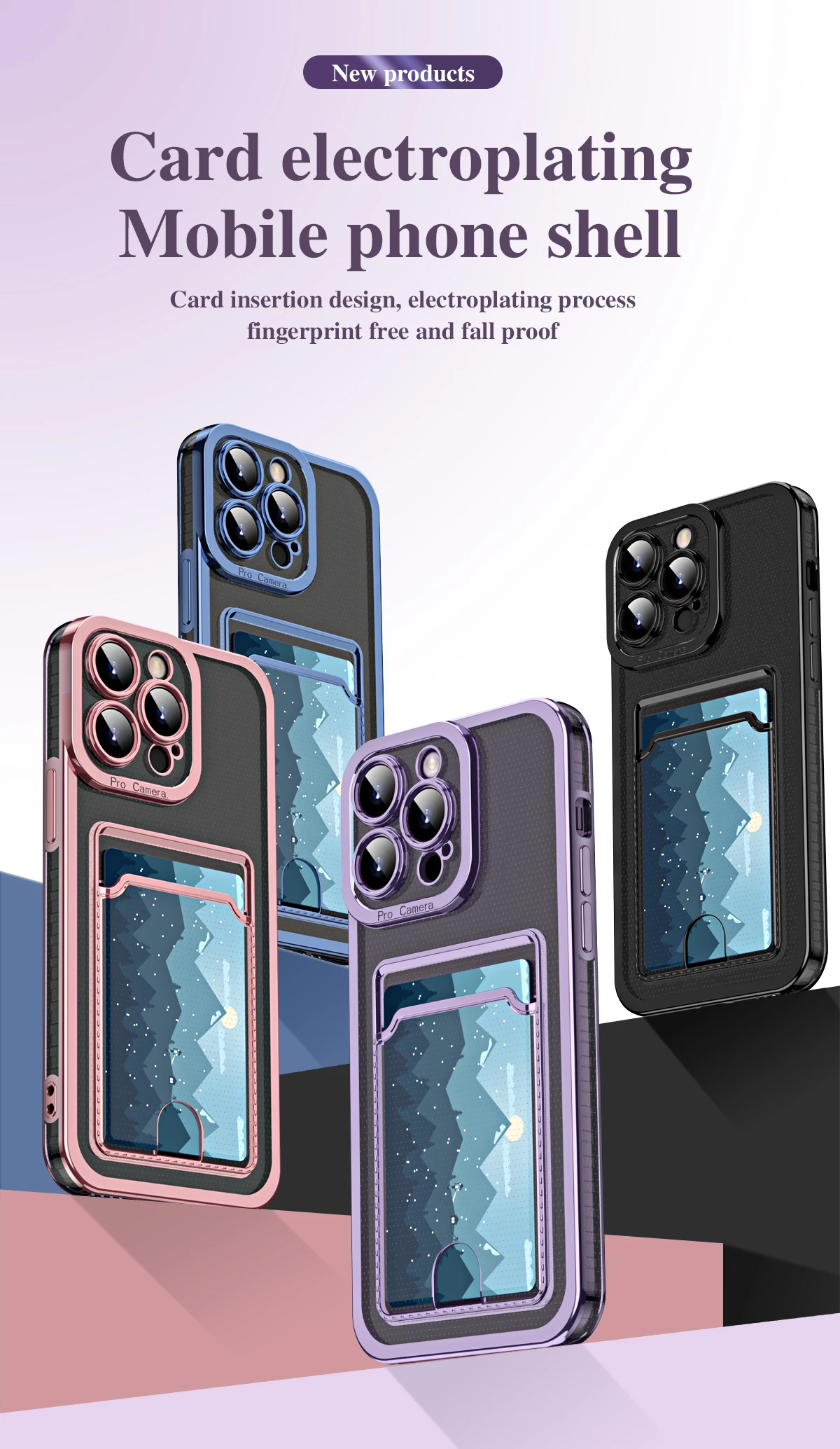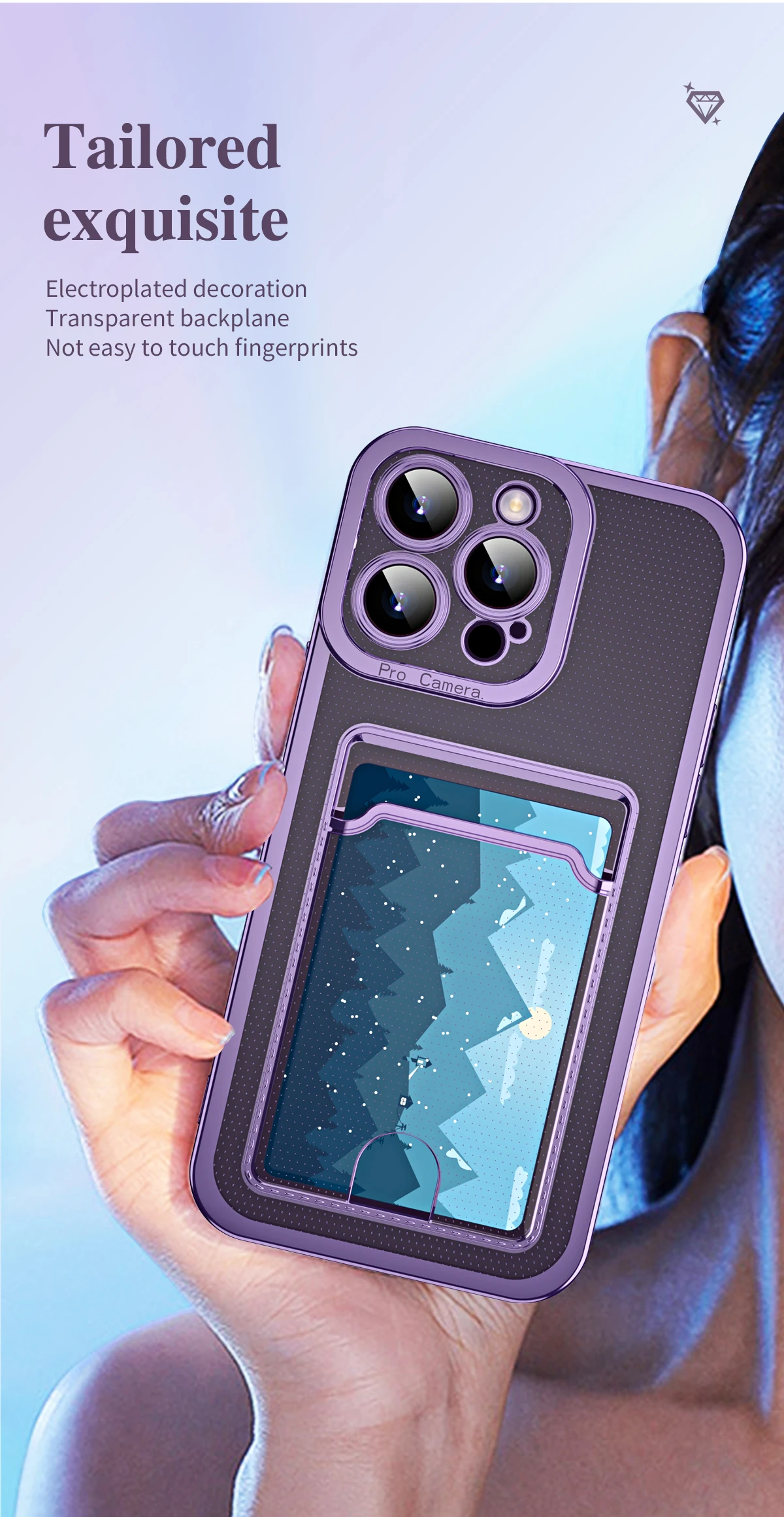 Luxury Plating Card Slots Transparent Soft TPU Case For iPhone 15 14 13 12 series