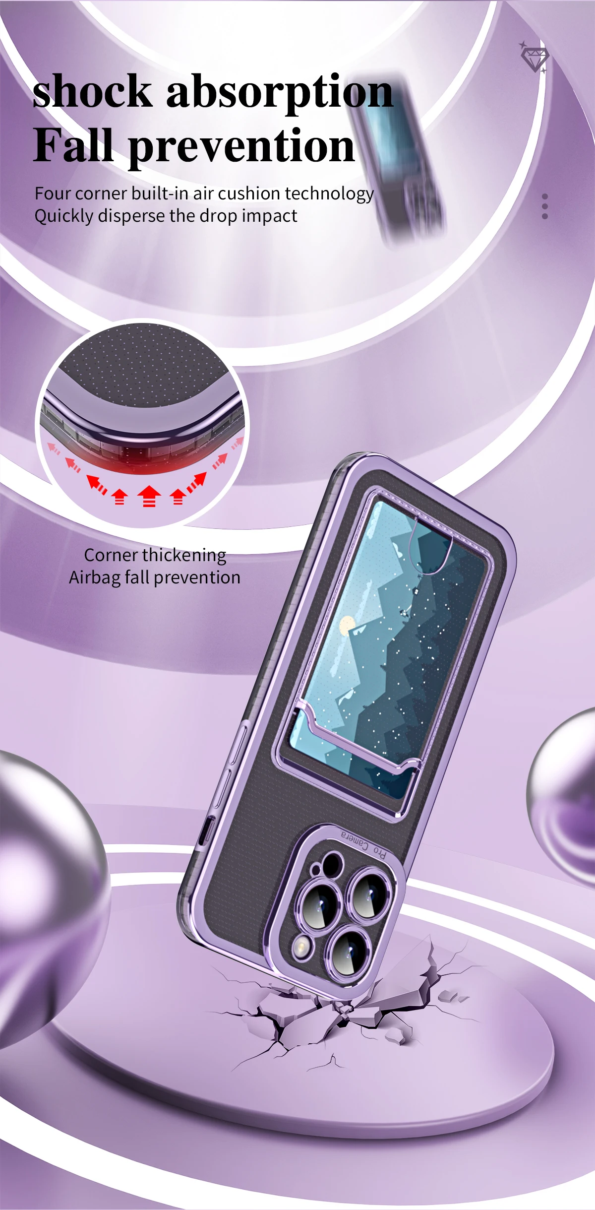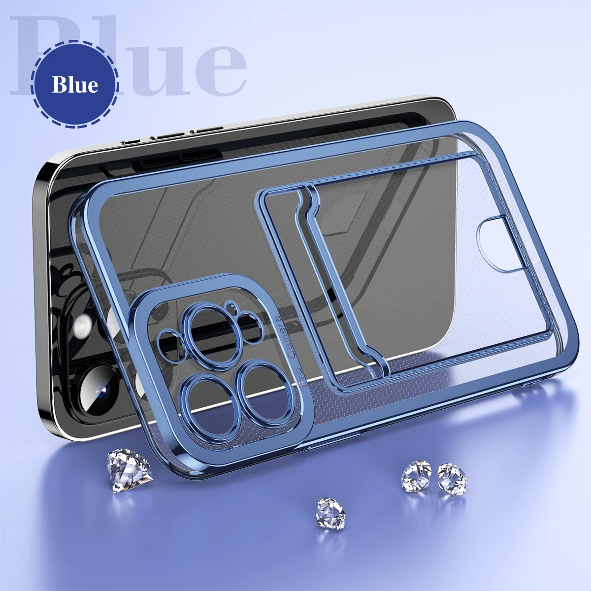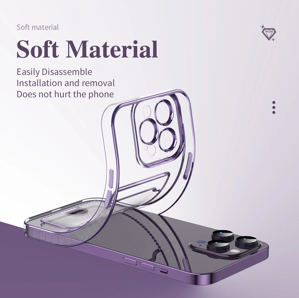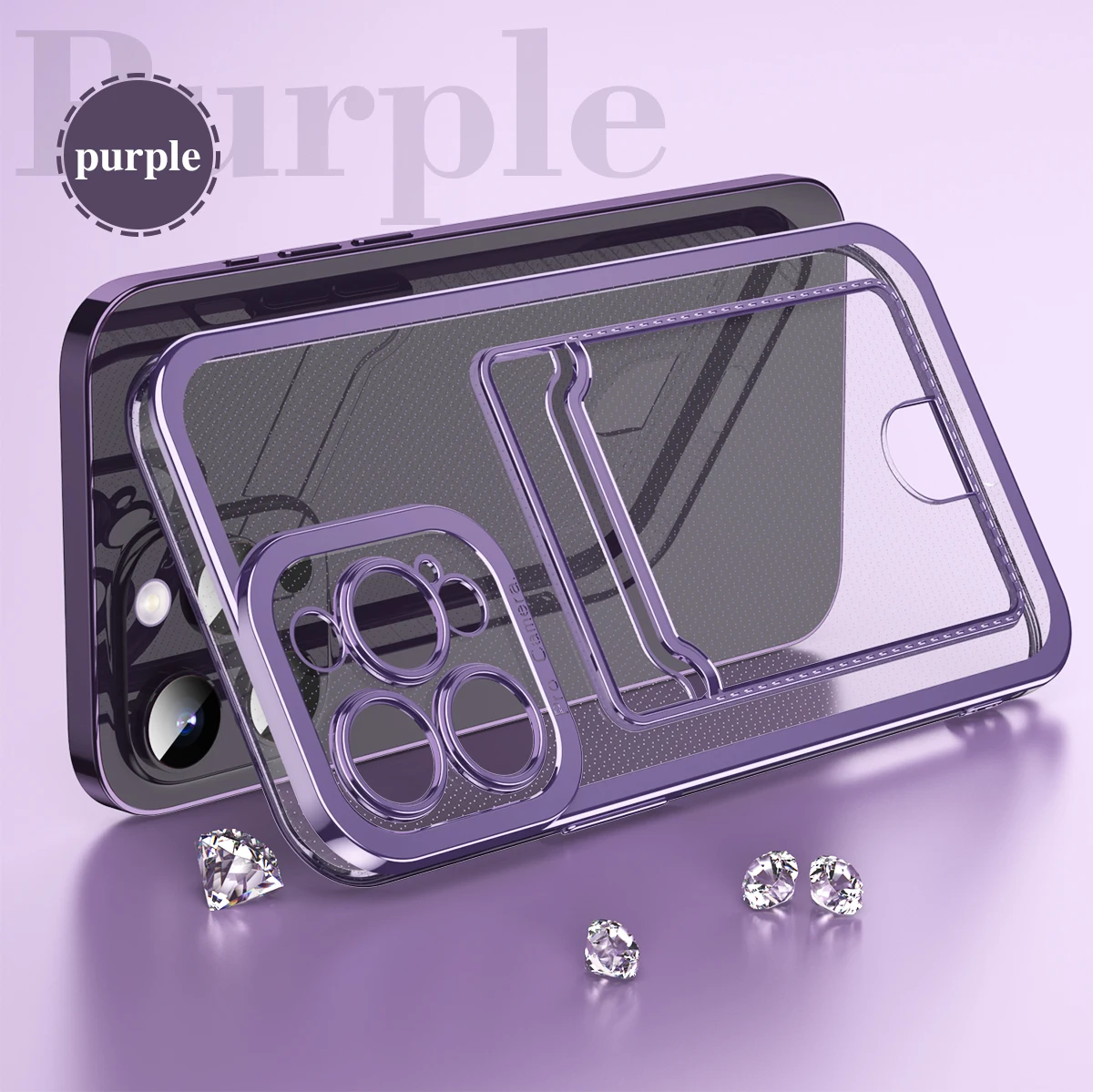 Luxury Plating Card Slots Transparent Soft TPU Case For iPhone 15 14 13 12 series