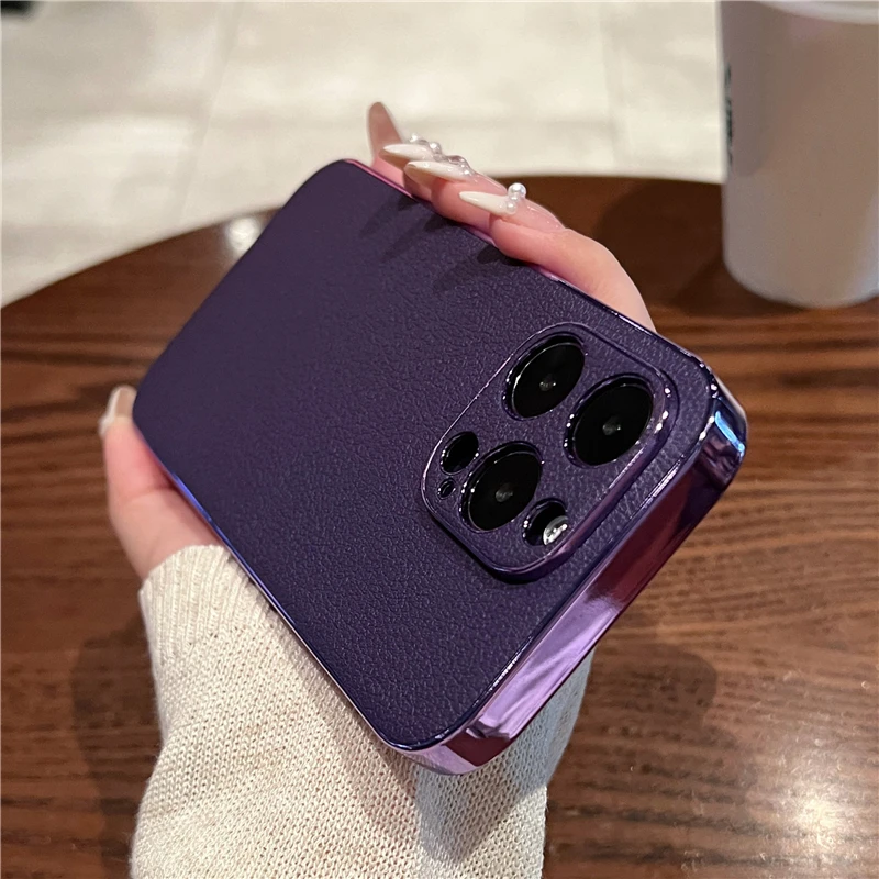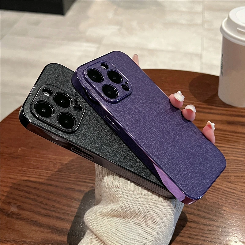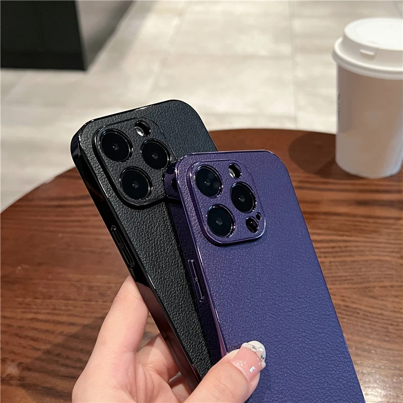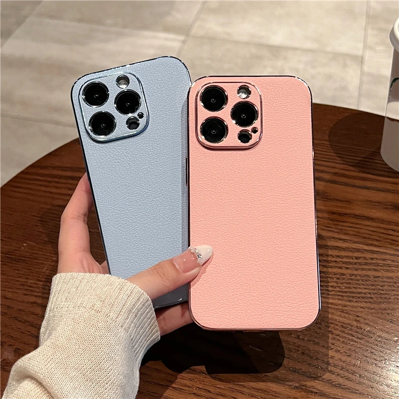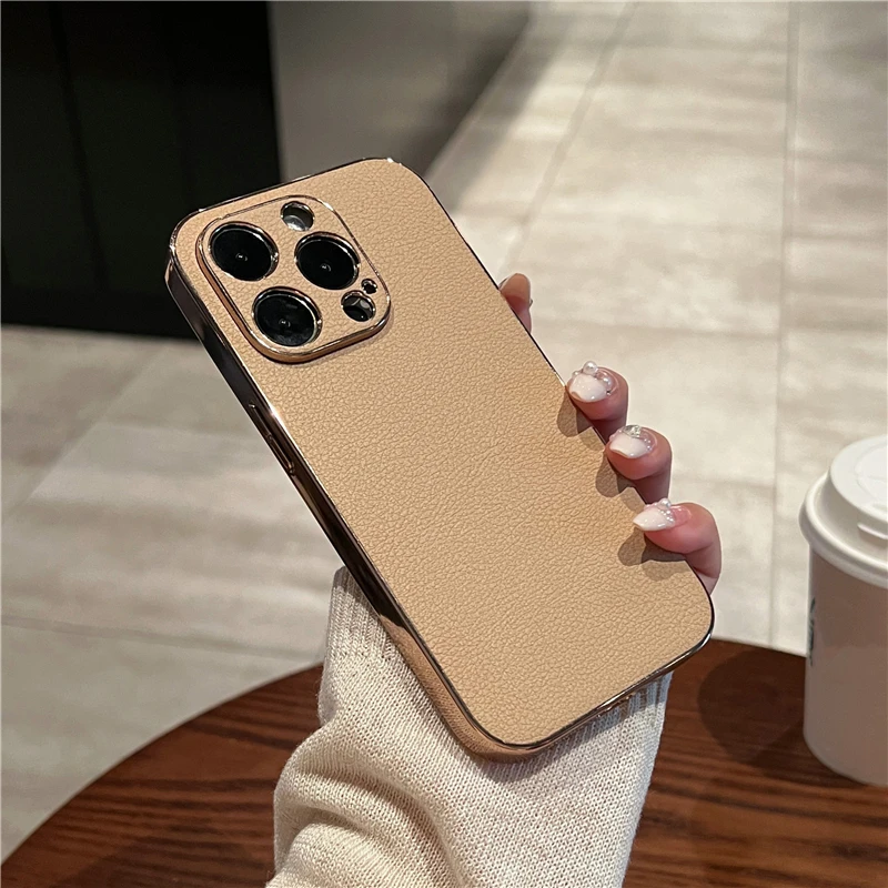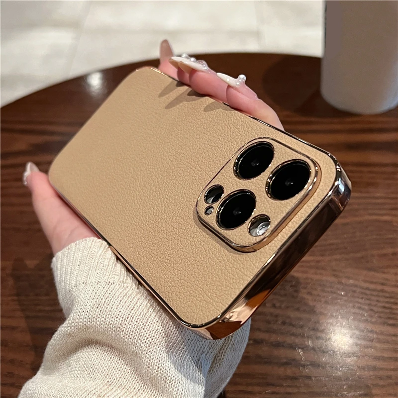Luxury Plating Frame Shockproof PU Leather Case For iPhone 15 14 13 12 series