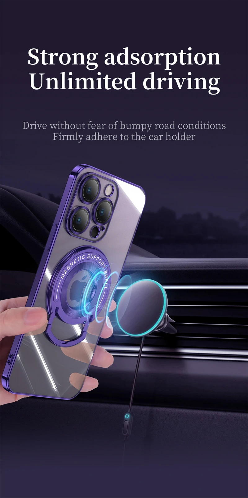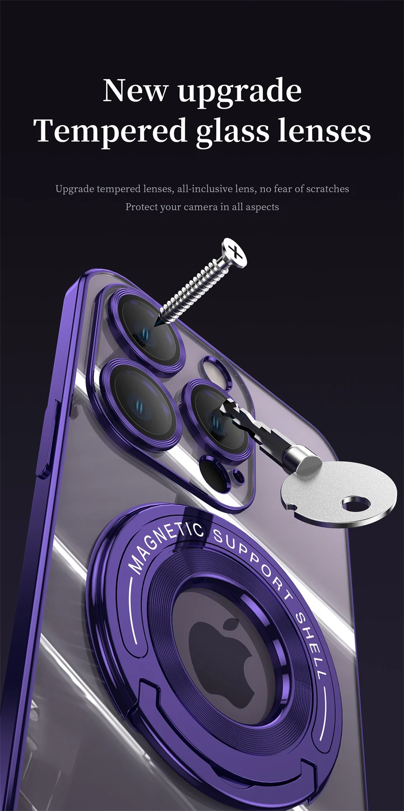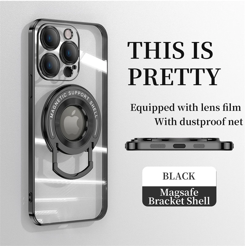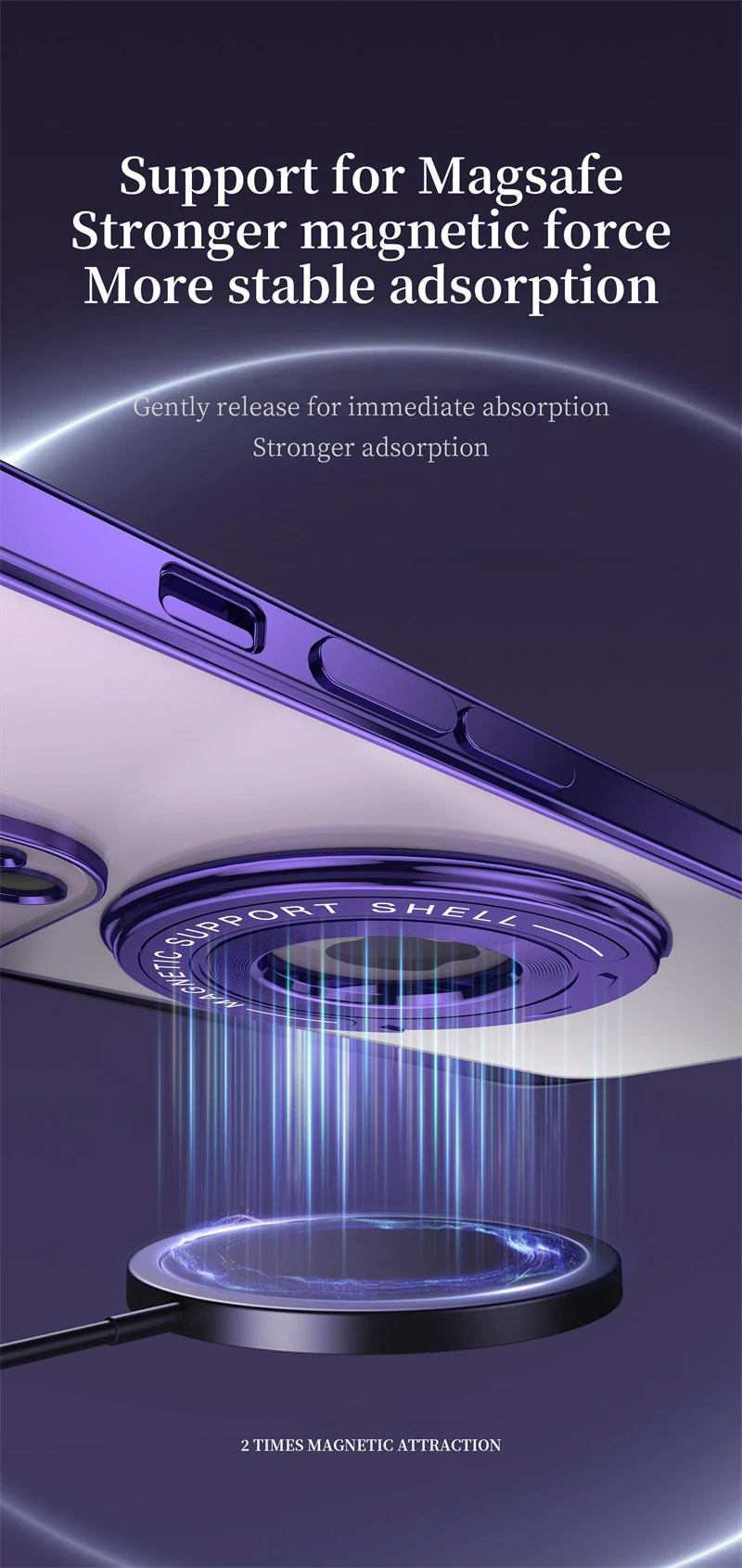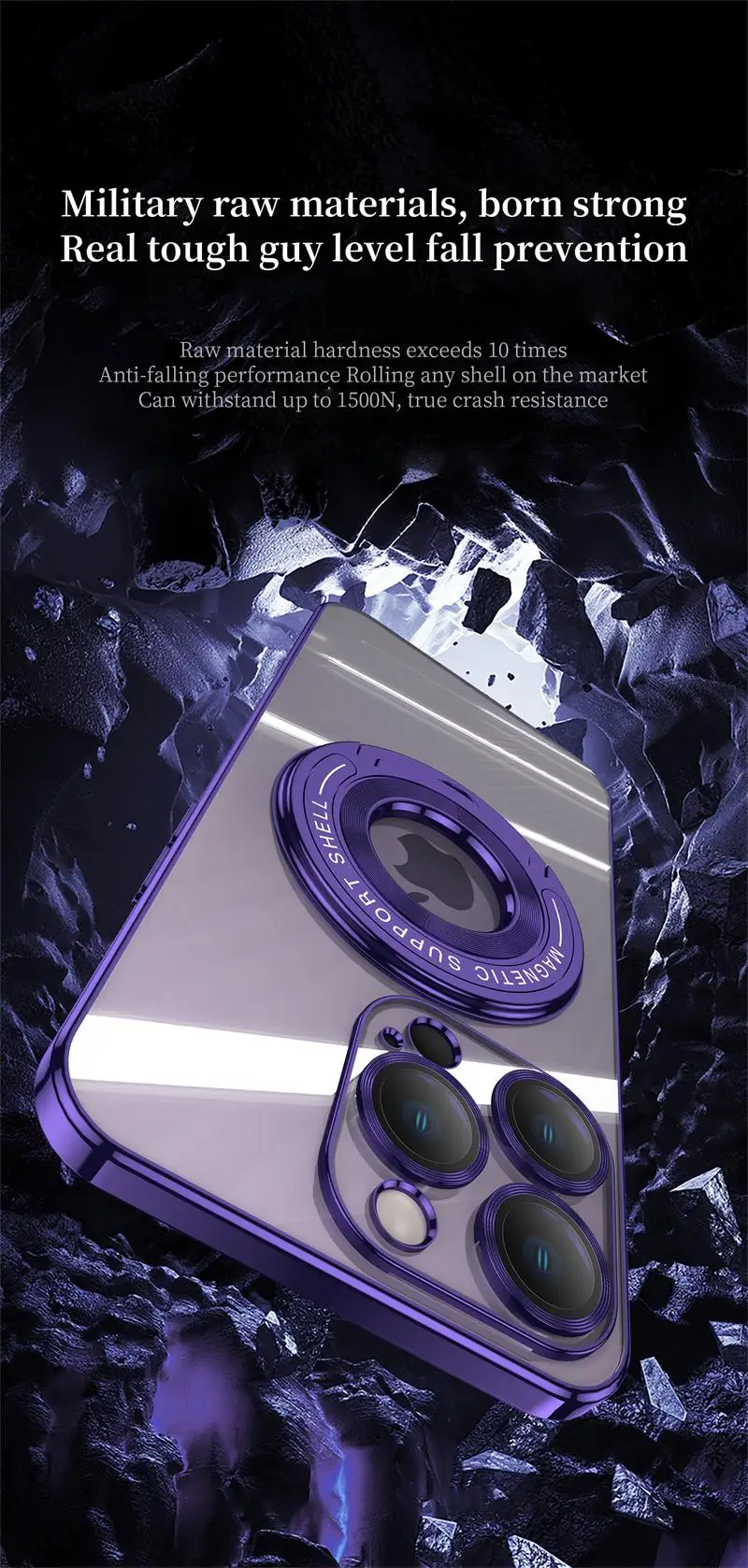 Luxury Plating Transparent Magsafe Magnetic Holder Lens Protect Silicone Case For iPhone 15 14 13 12 series