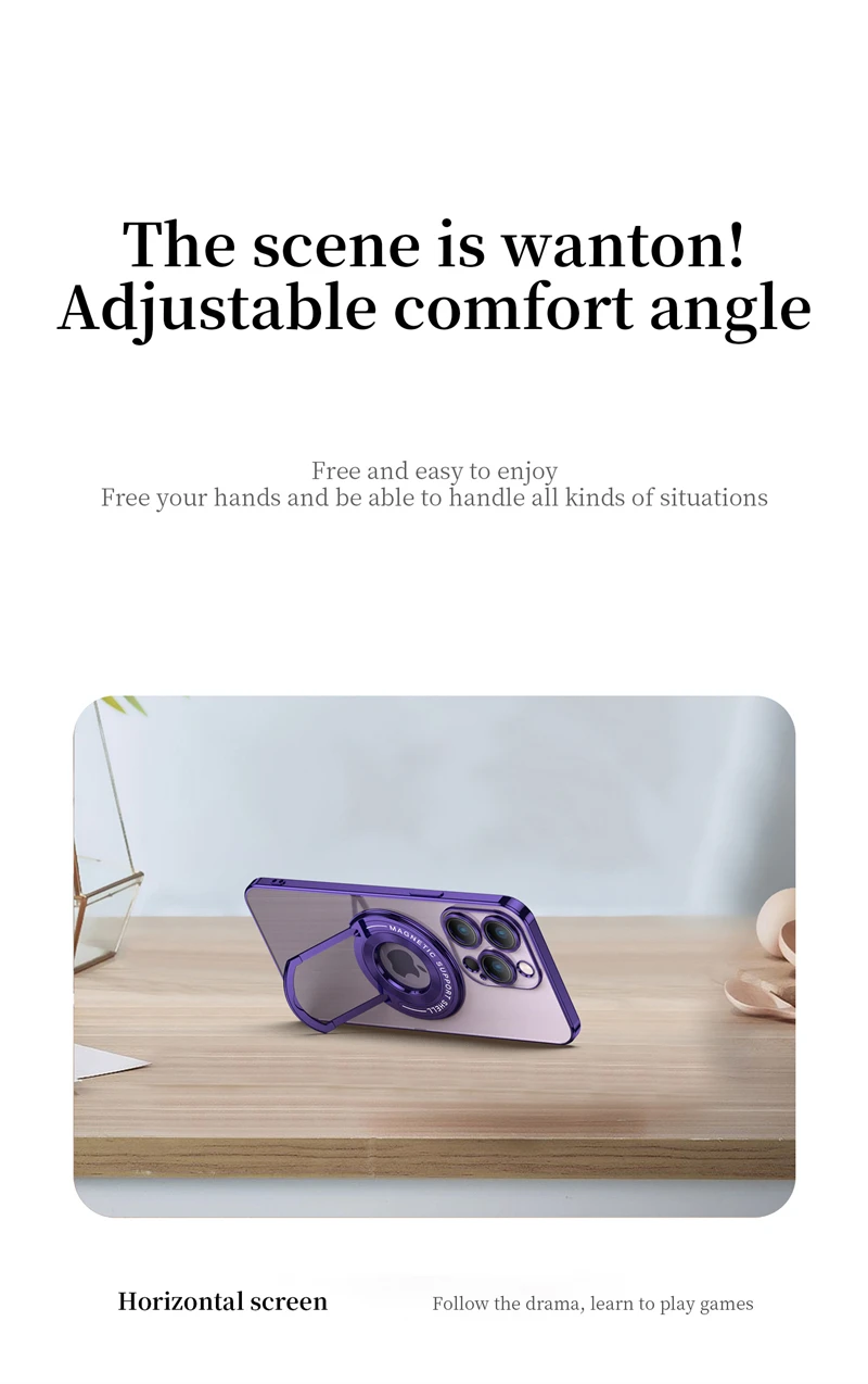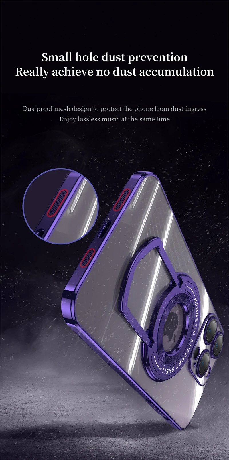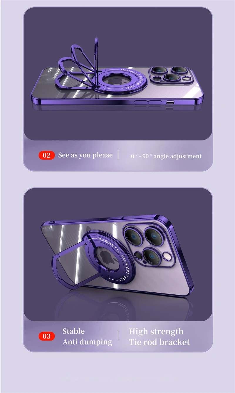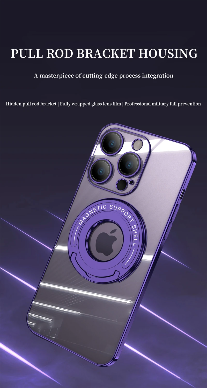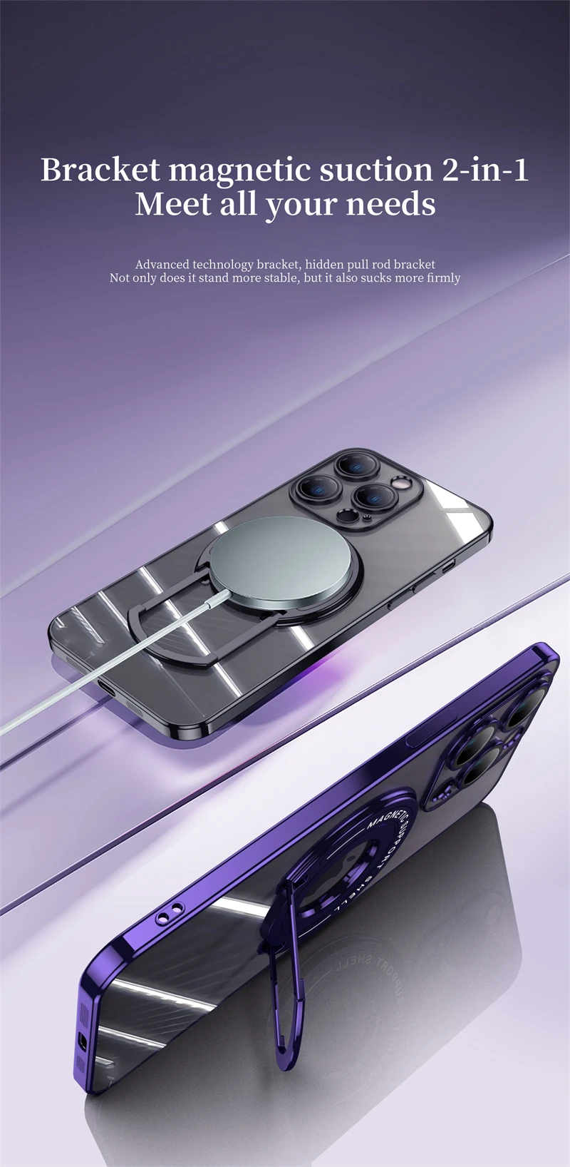Luxury Plating Transparent Magsafe Magnetic Holder Lens Protect Silicone Case For iPhone 15 14 13 12 series