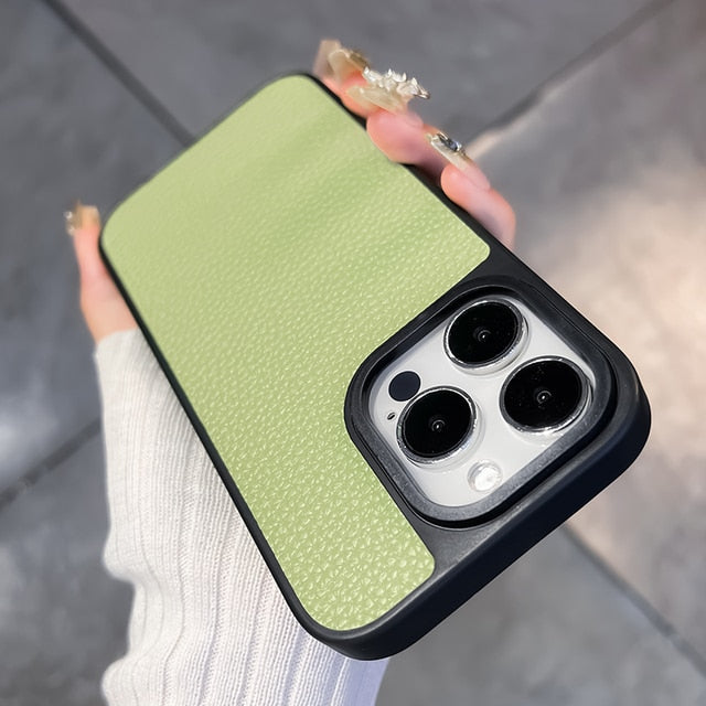 Luxury Shockproof Hard PU Leather Silicone Case For iPhone 14 13 12 series