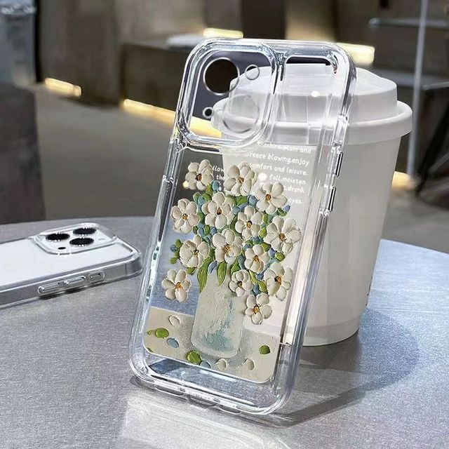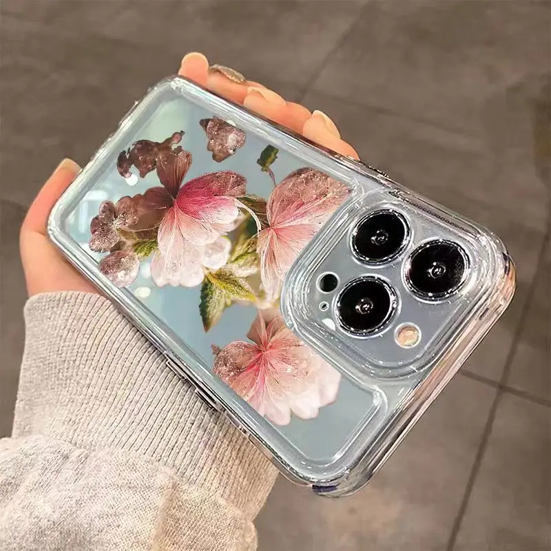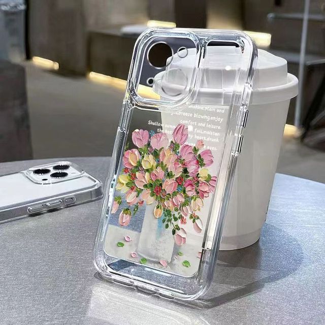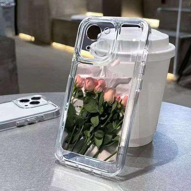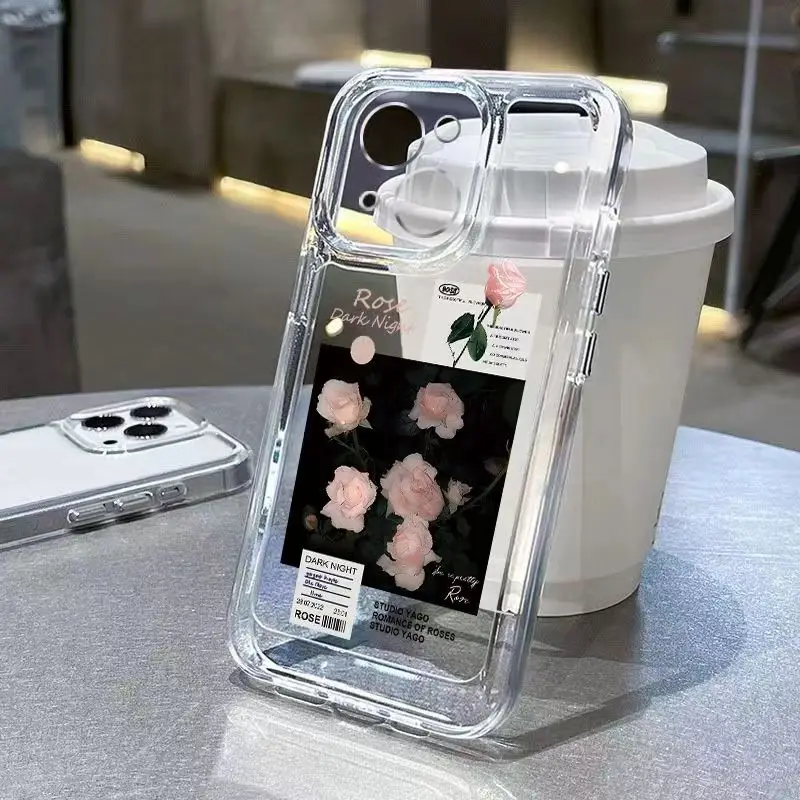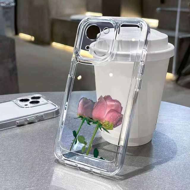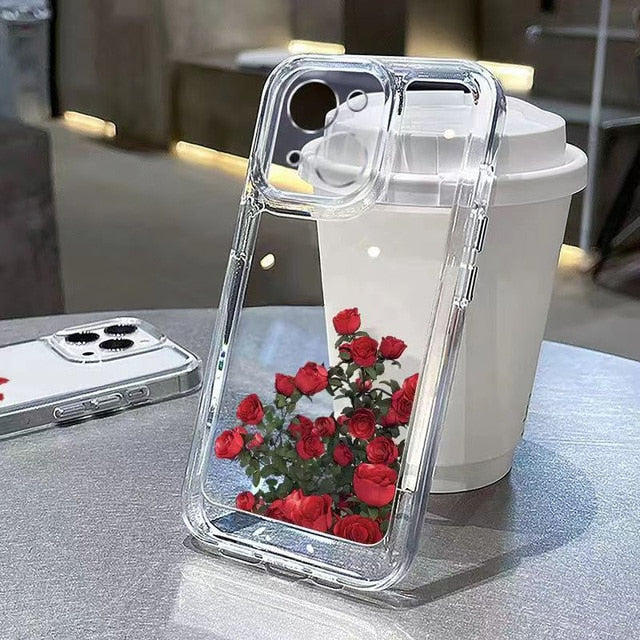 Luxury Shockproof Rose Flower Painting Soft Clear Case For iPhone 14 13 12 series