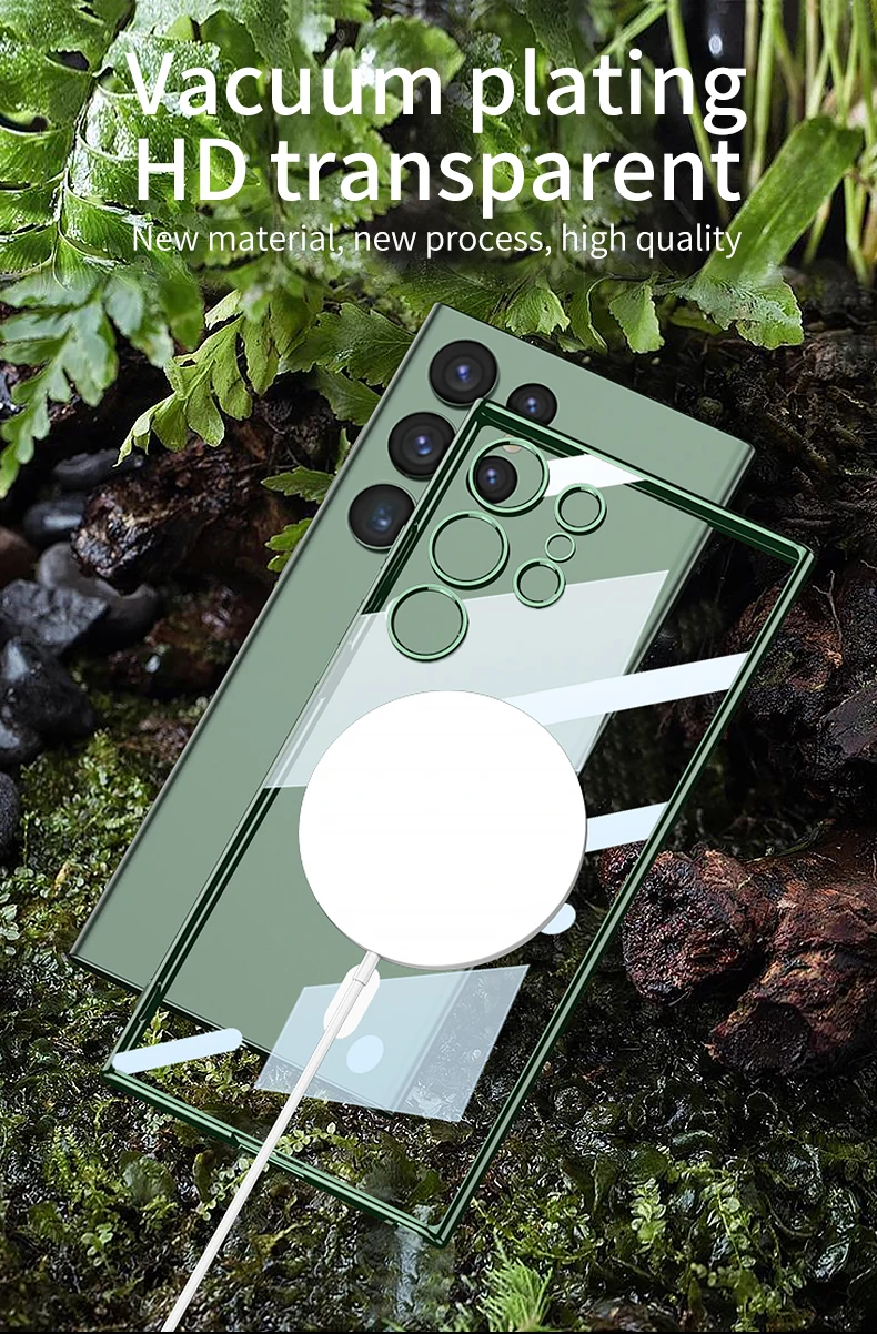 Luxury Wireless Charging Plating Clear Soft Case For Samsung Galaxy S23 Ultra Plus