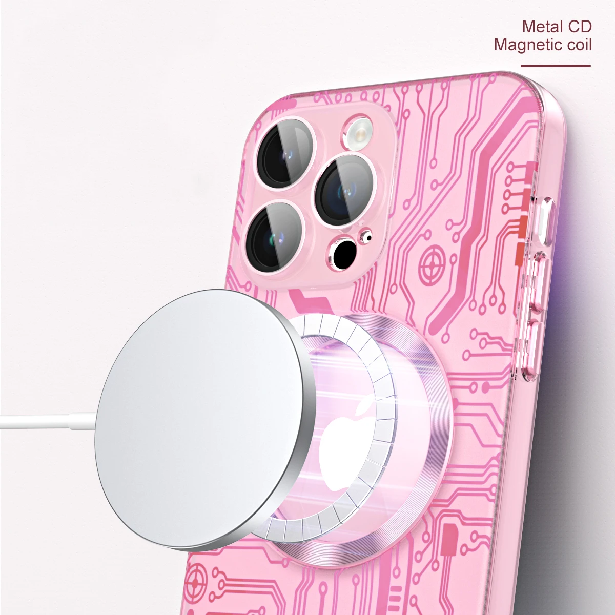Magnetic Circuit Diagram Case With Lens Film Magsafe For iPhone 14 13 12 series
