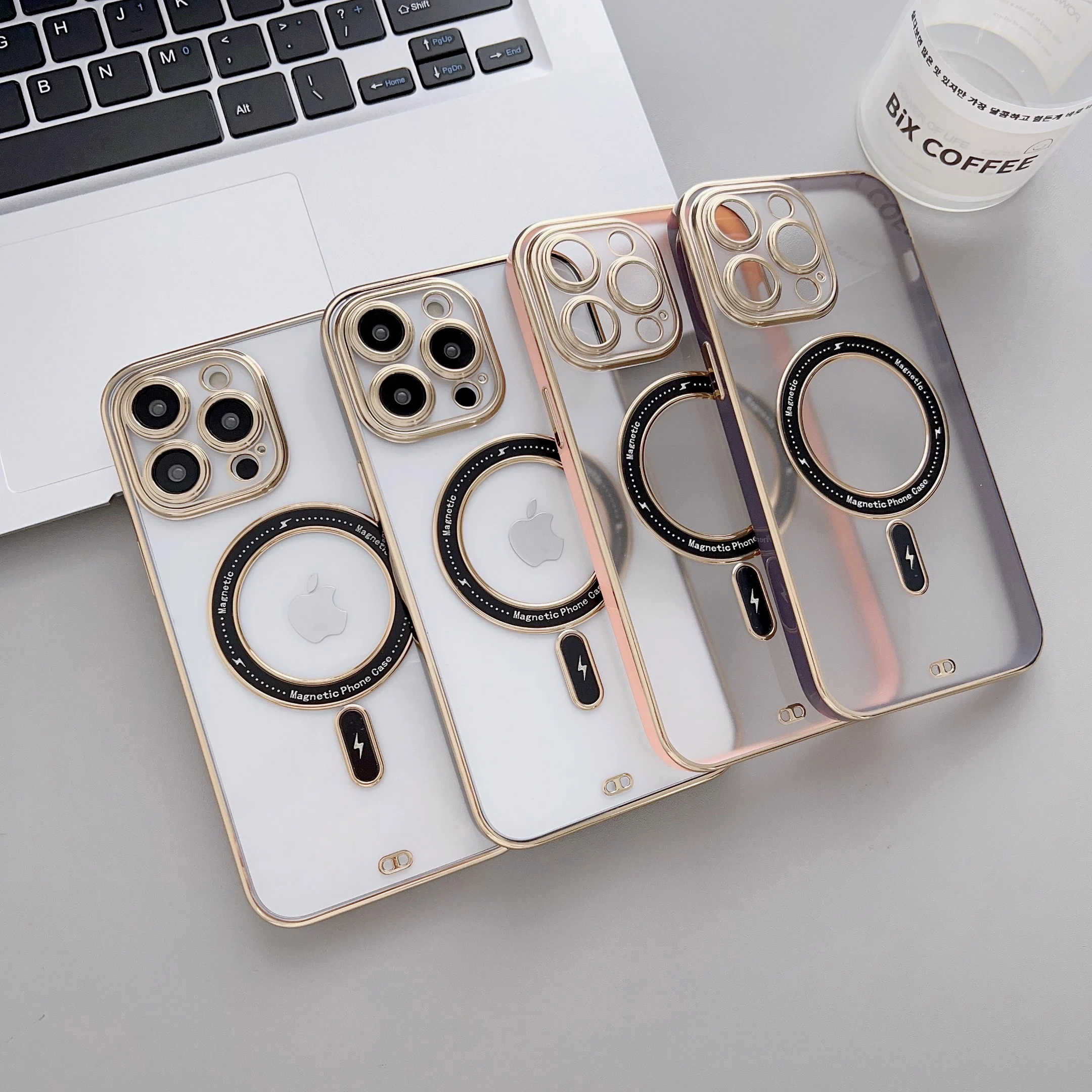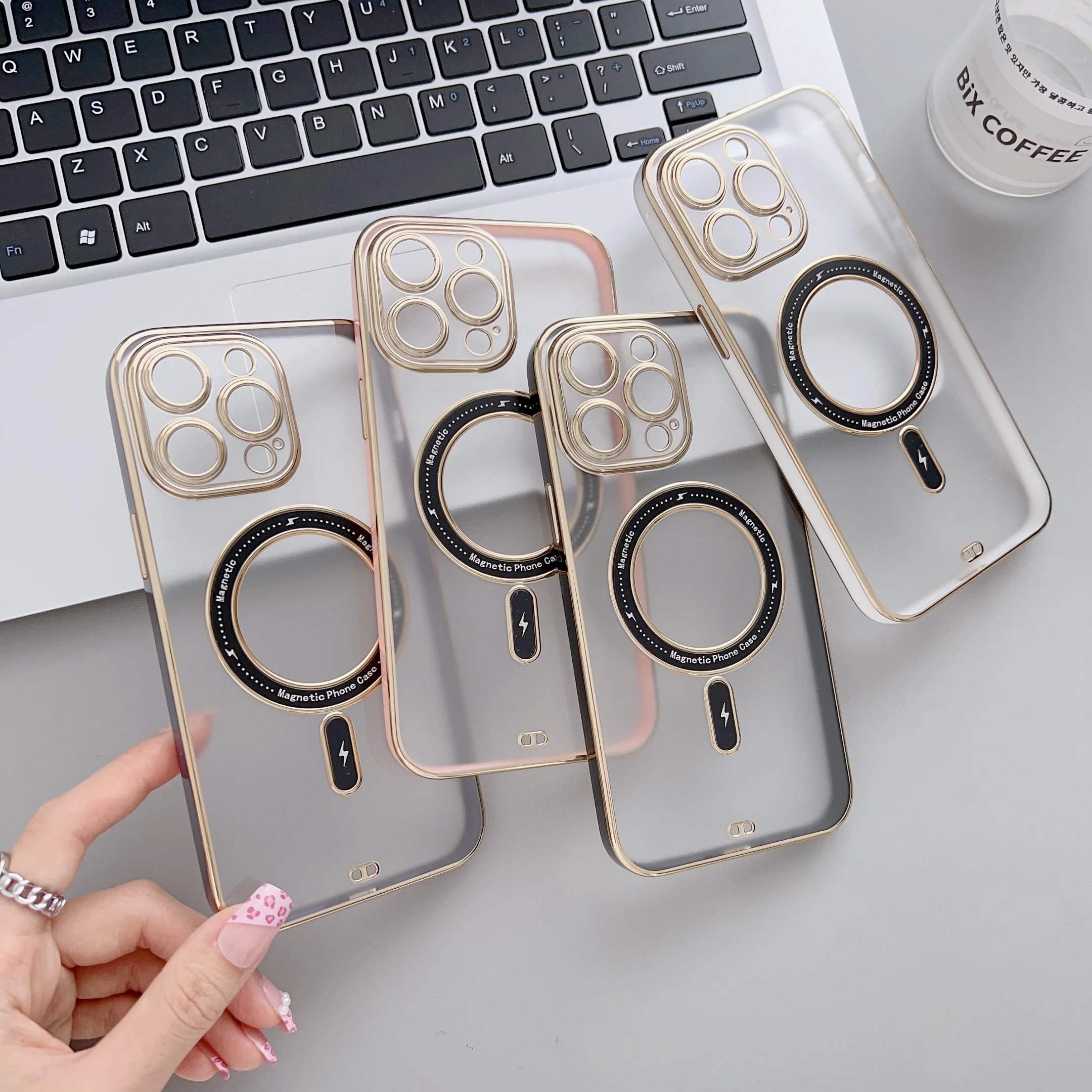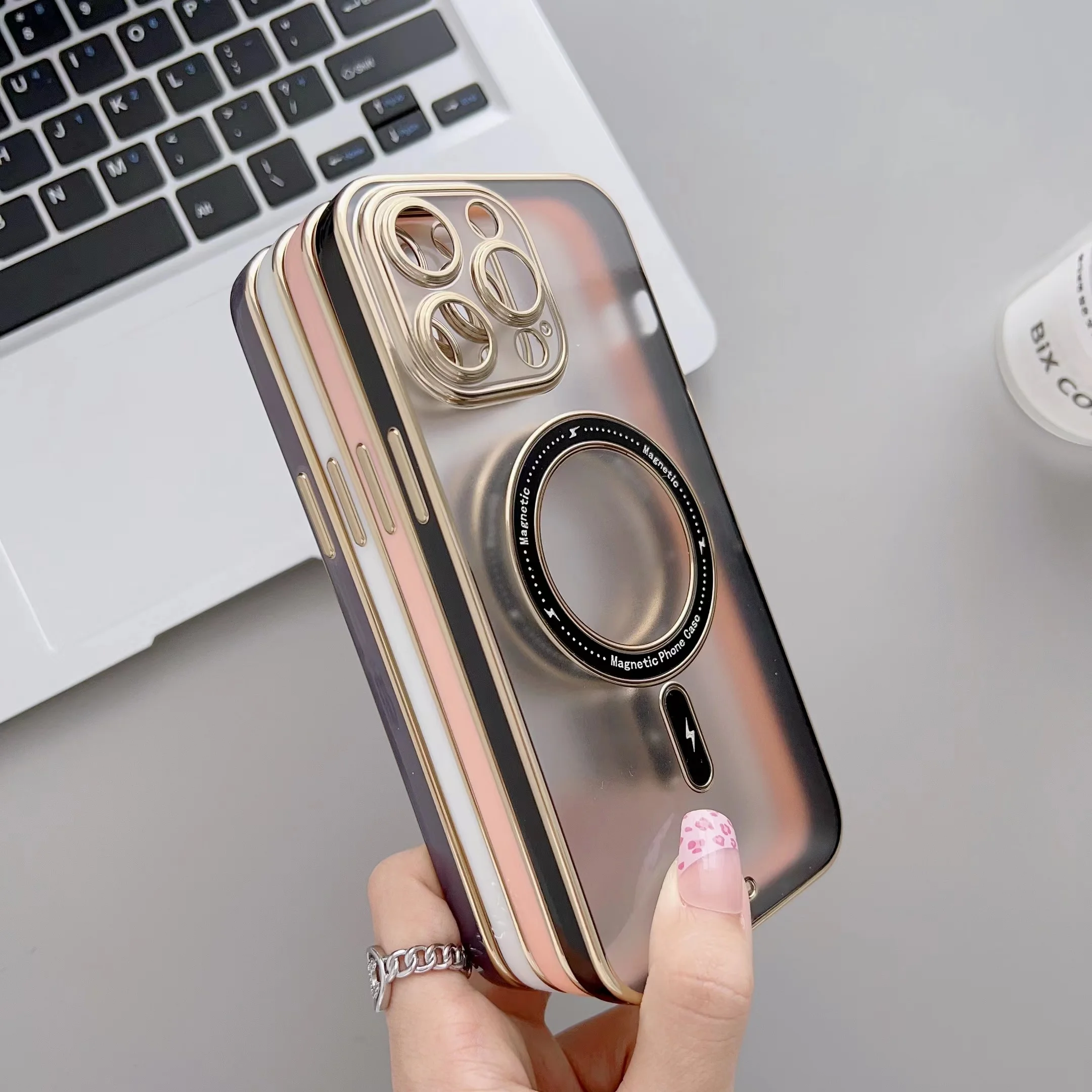 Magnetic Electroplating Plating Lens Protection Frosted Case For iPhone 14 13 12 series