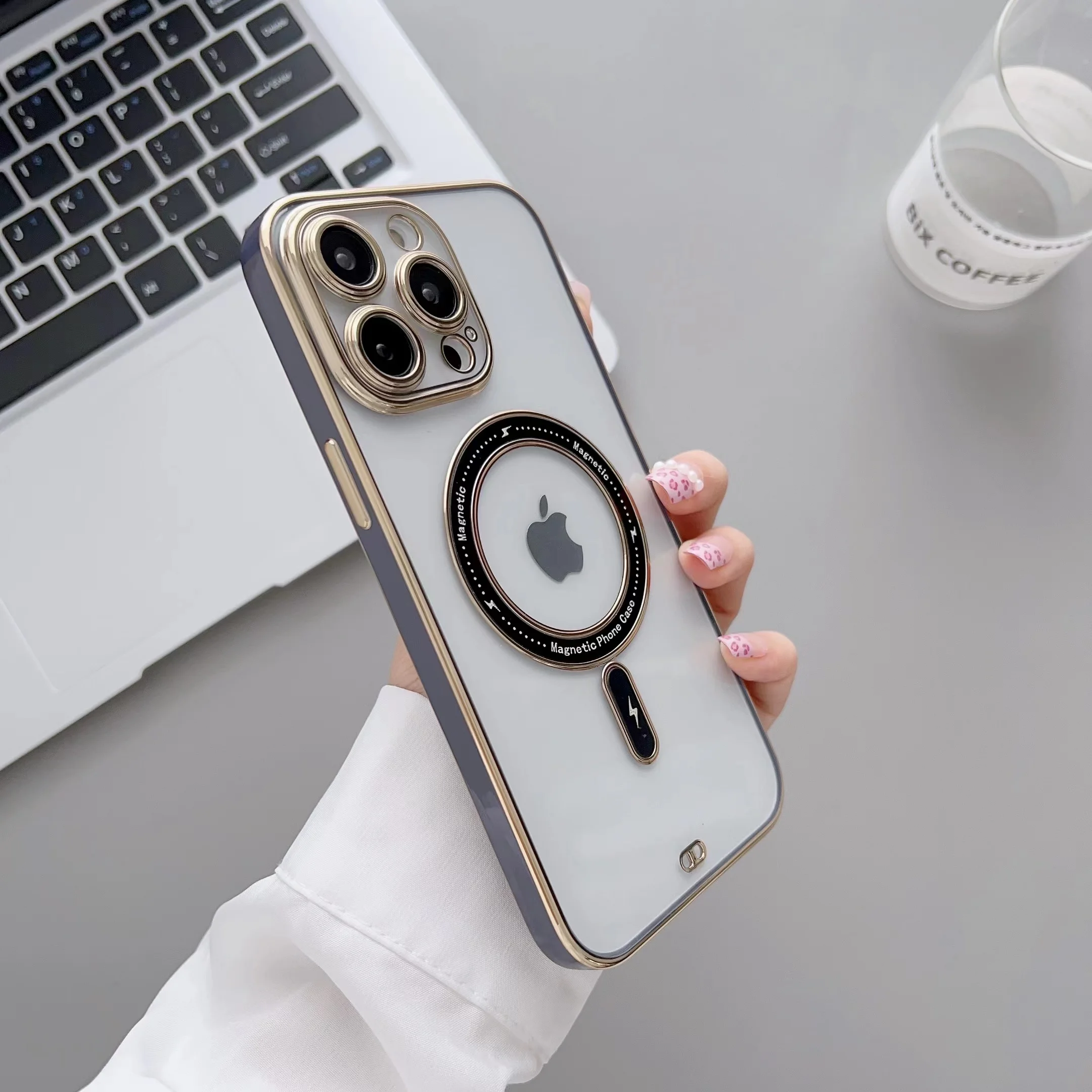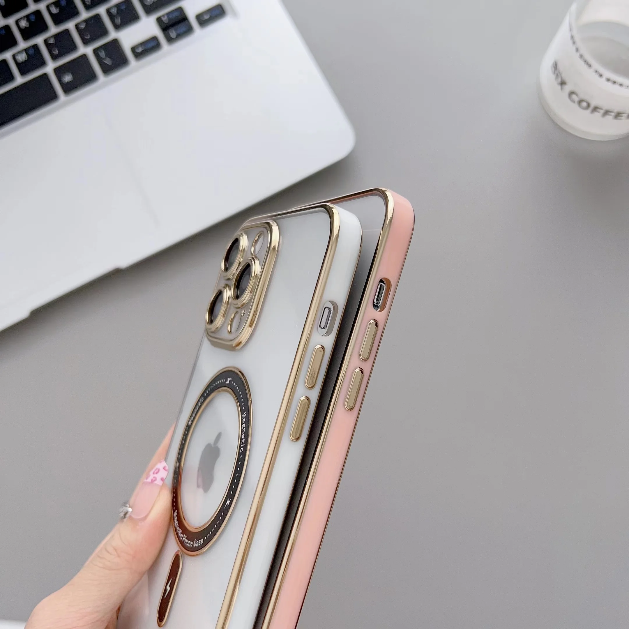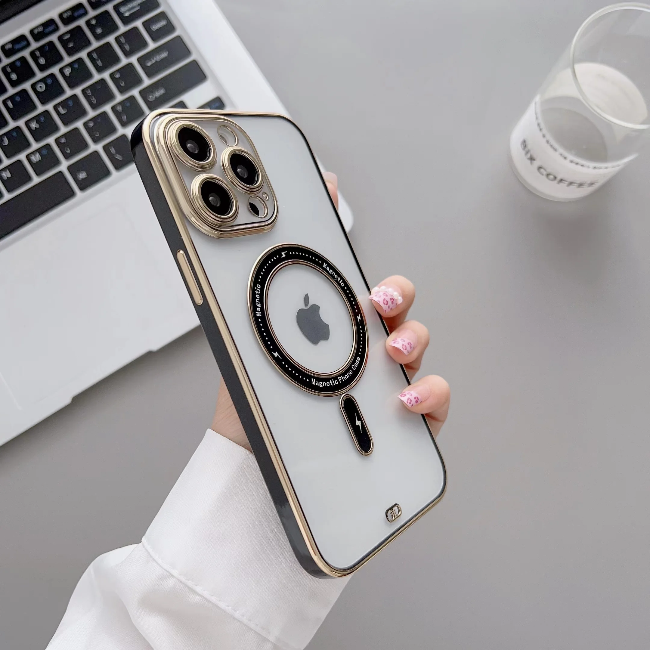 Magnetic Electroplating Plating Lens Protection Frosted Case For iPhone 14 13 12 series
