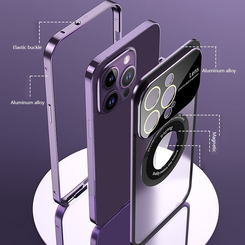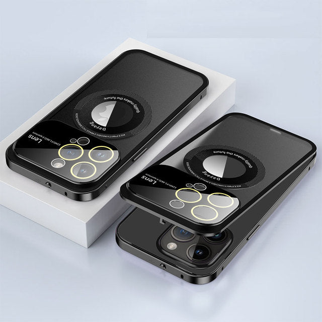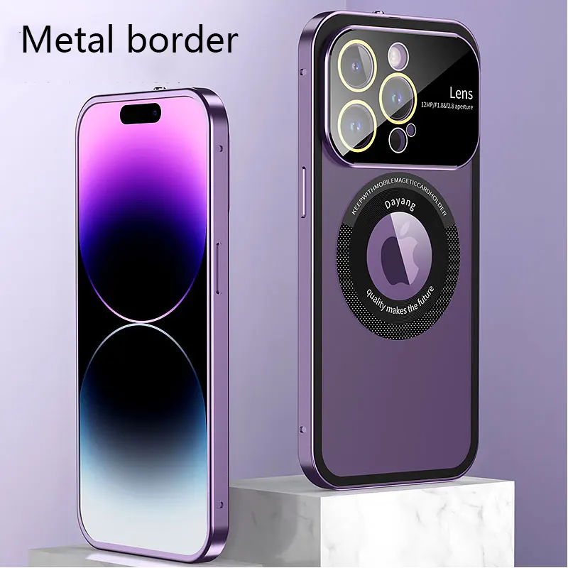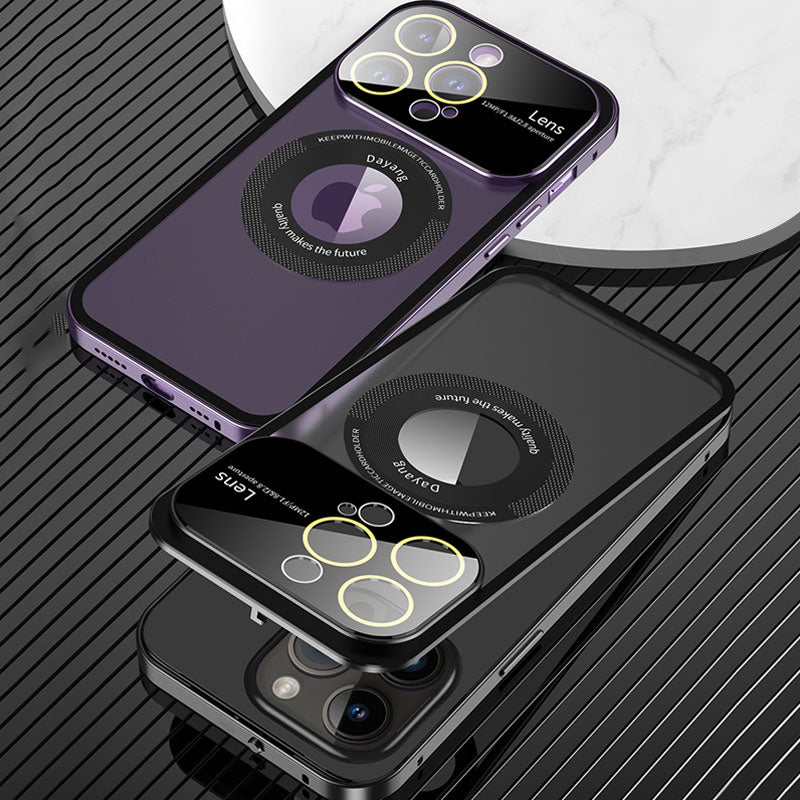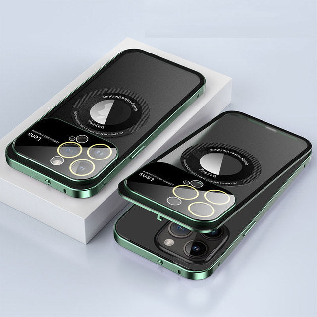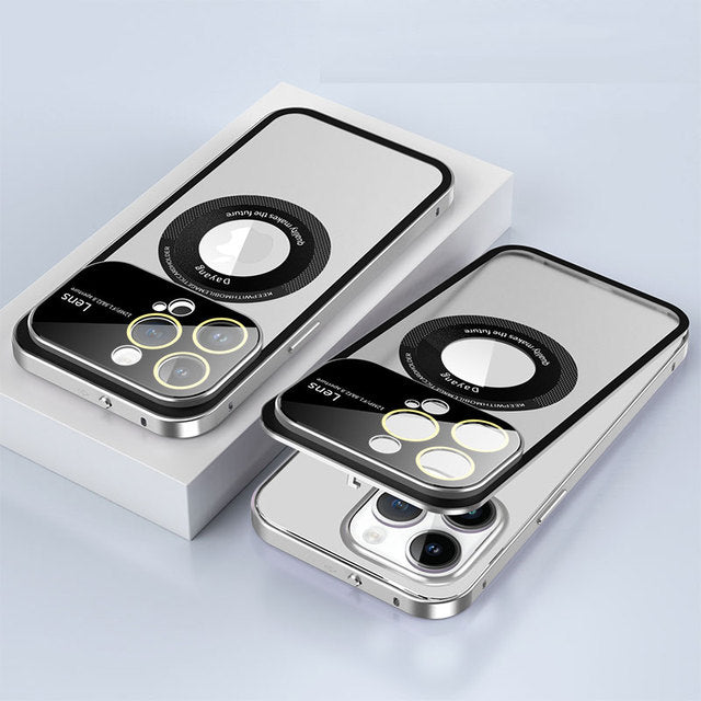 Magnetic Metal Glass Lens Large Window Wireless Charging Magsafe Case For iPhone 14 13 12 series