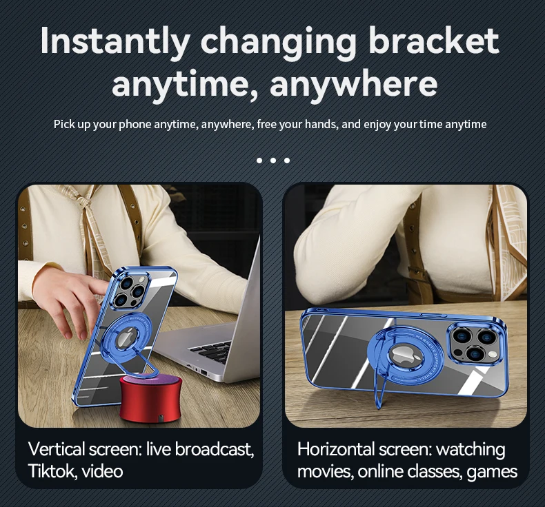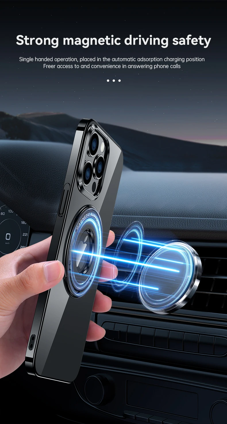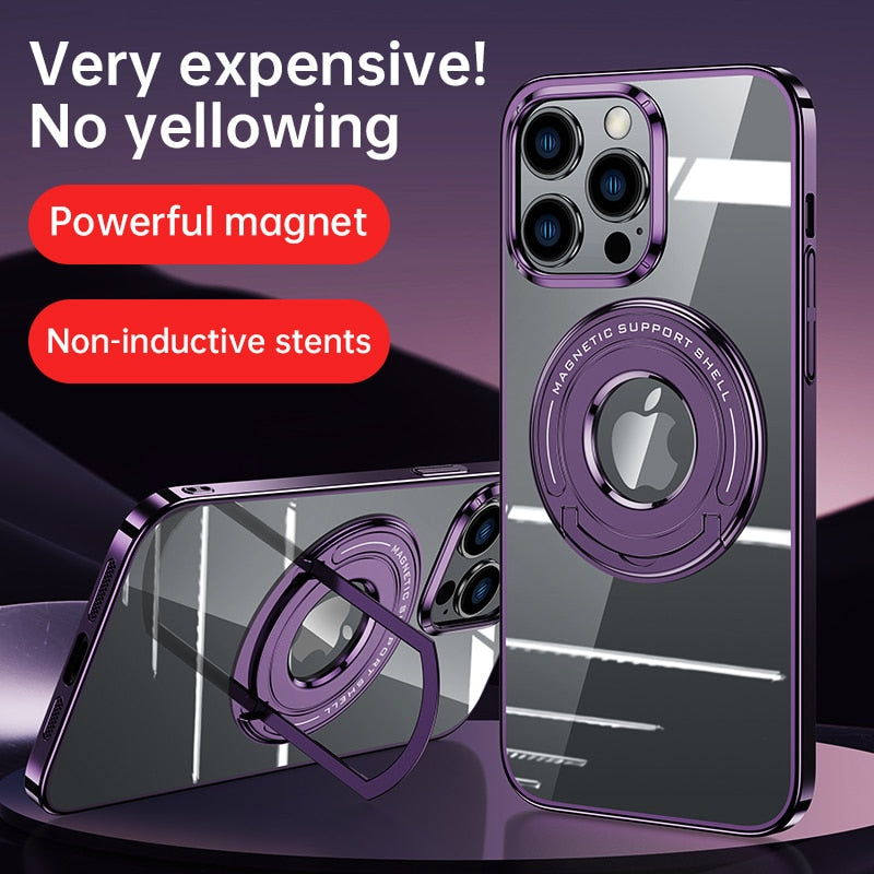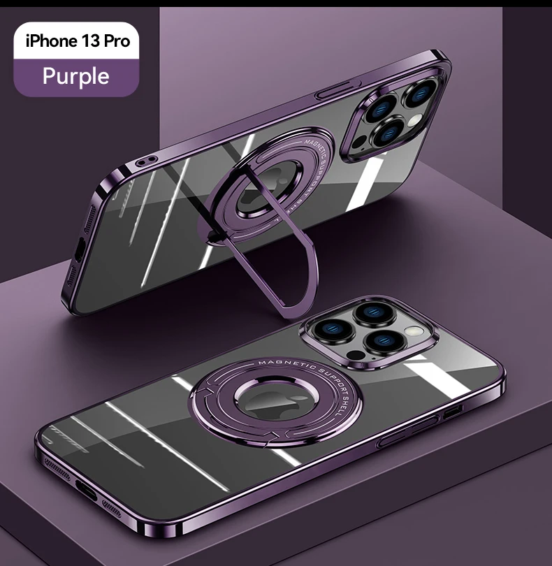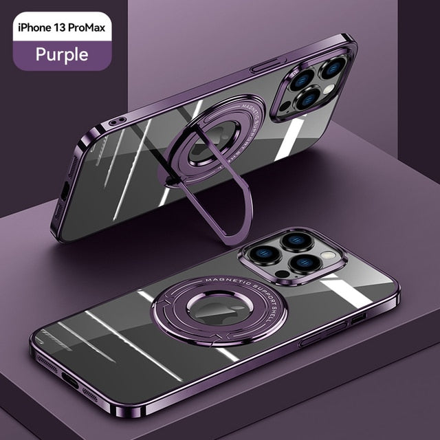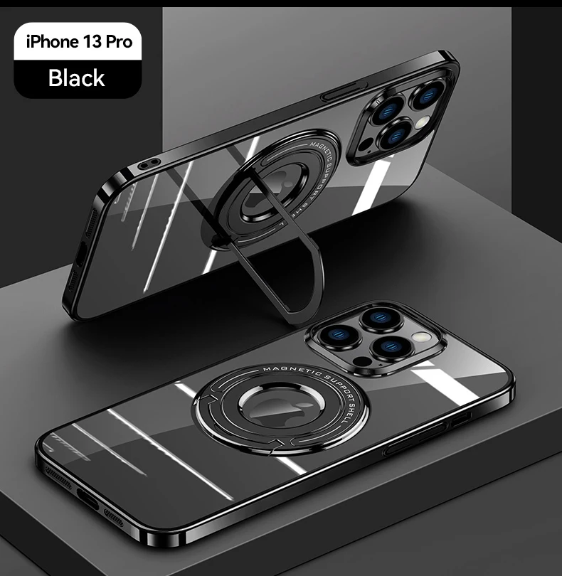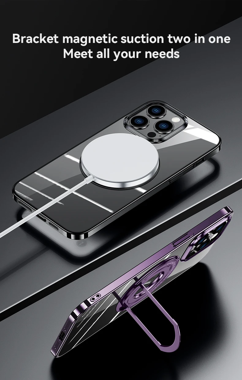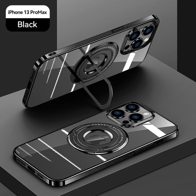 Magnetic Ring Holder Electroplated Frame Transparent Case For iPhone 14 13 12 series