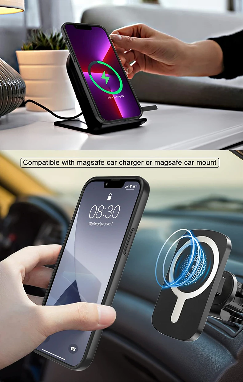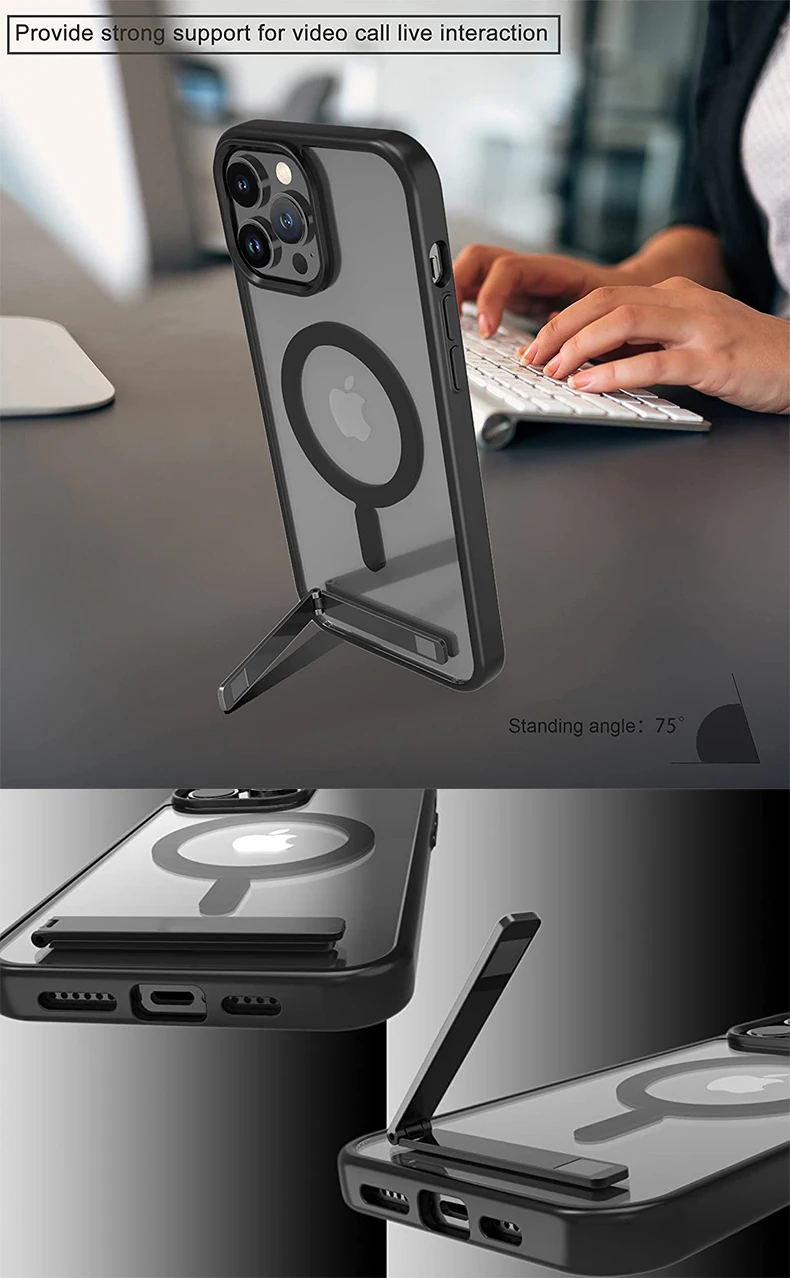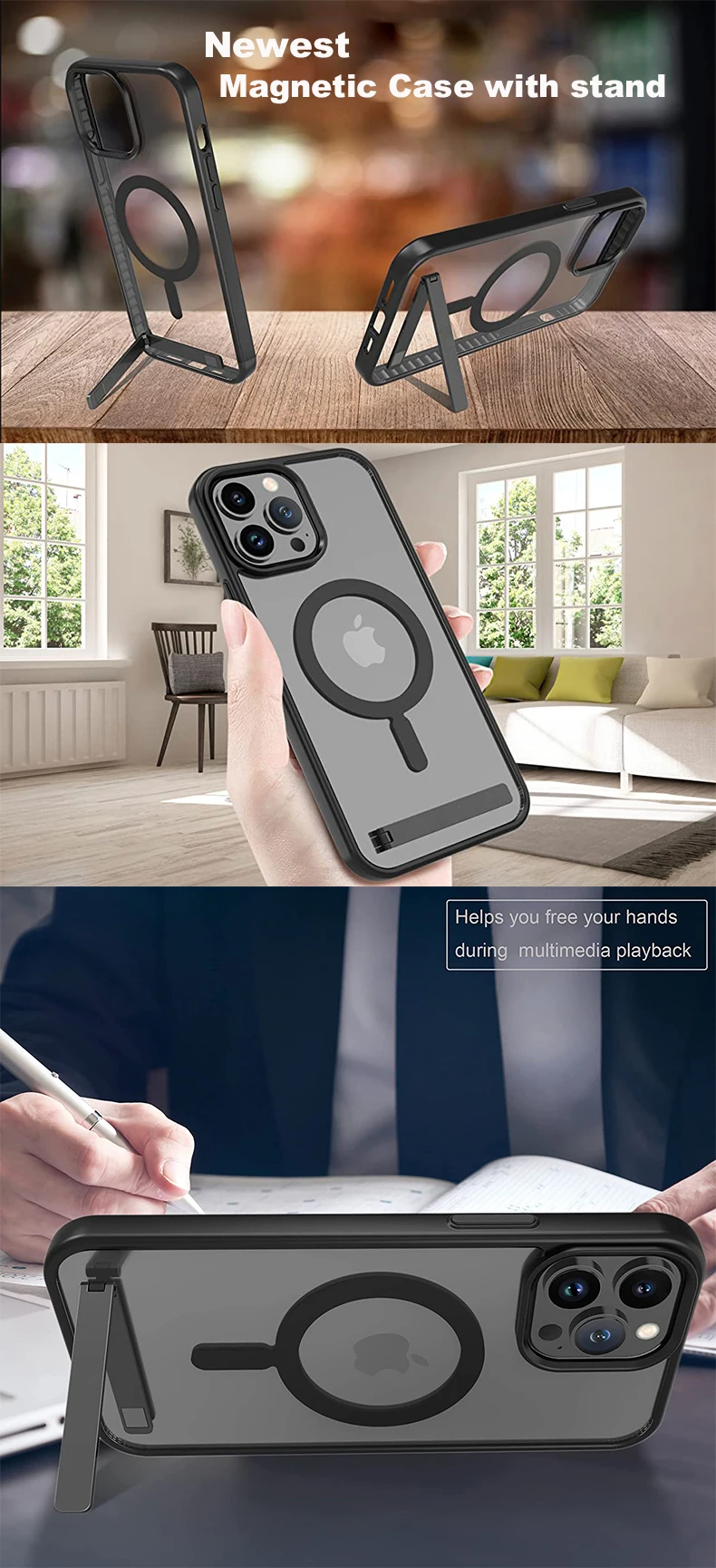 Magnetic Shockproof Case With Metal Kickstand For iPhone 14 13 12 series