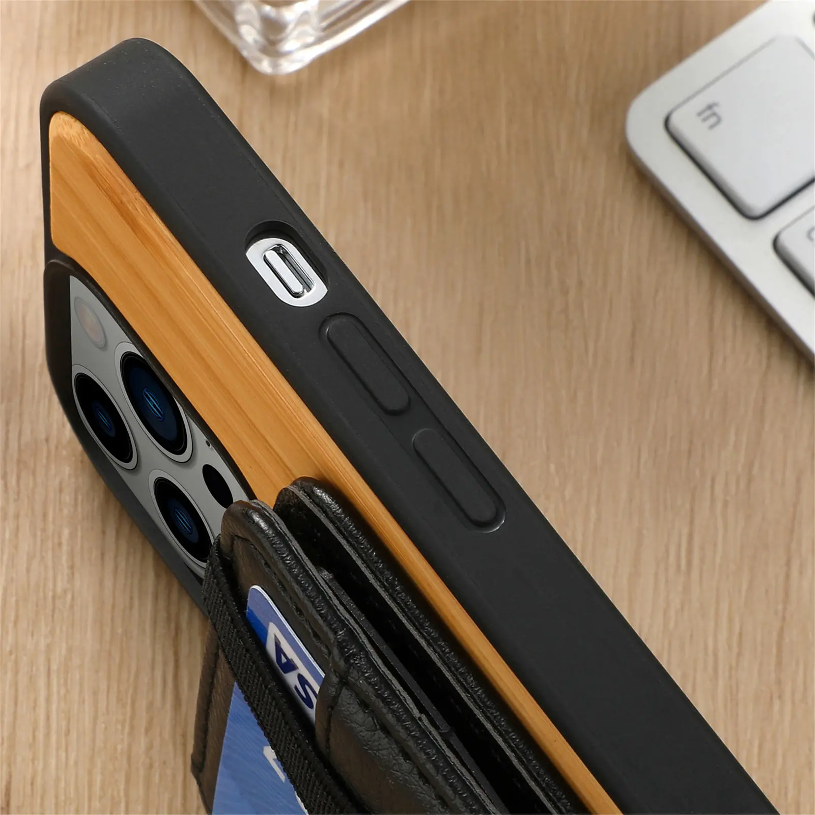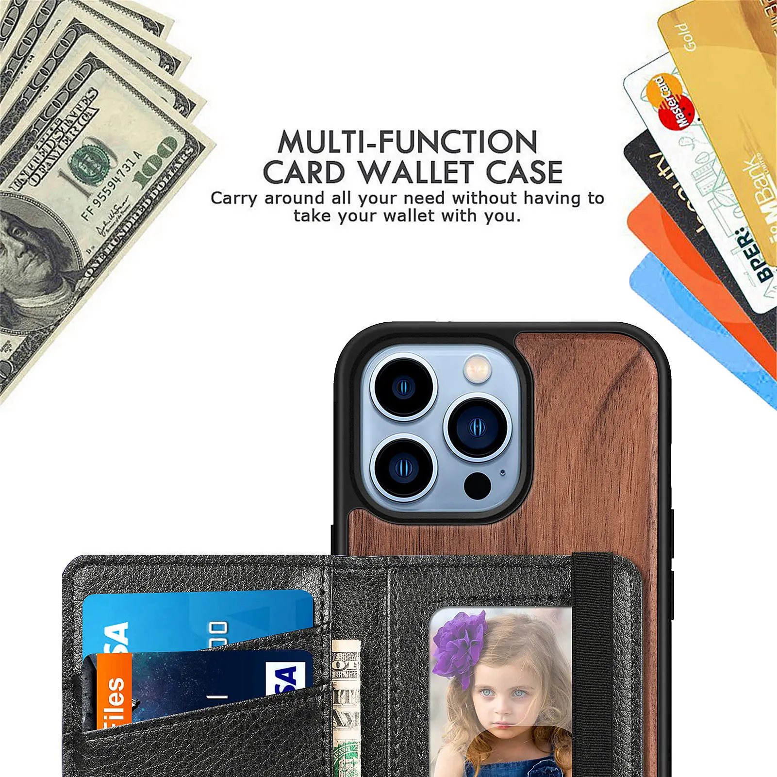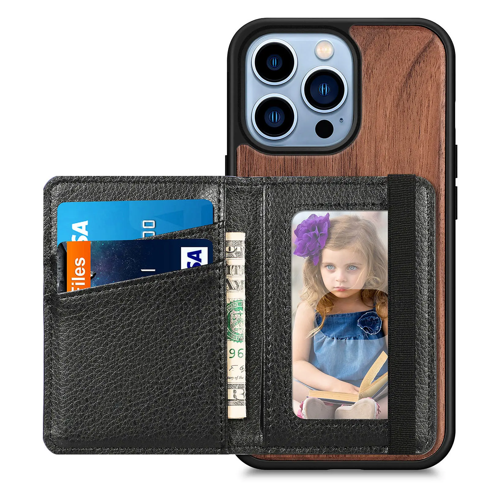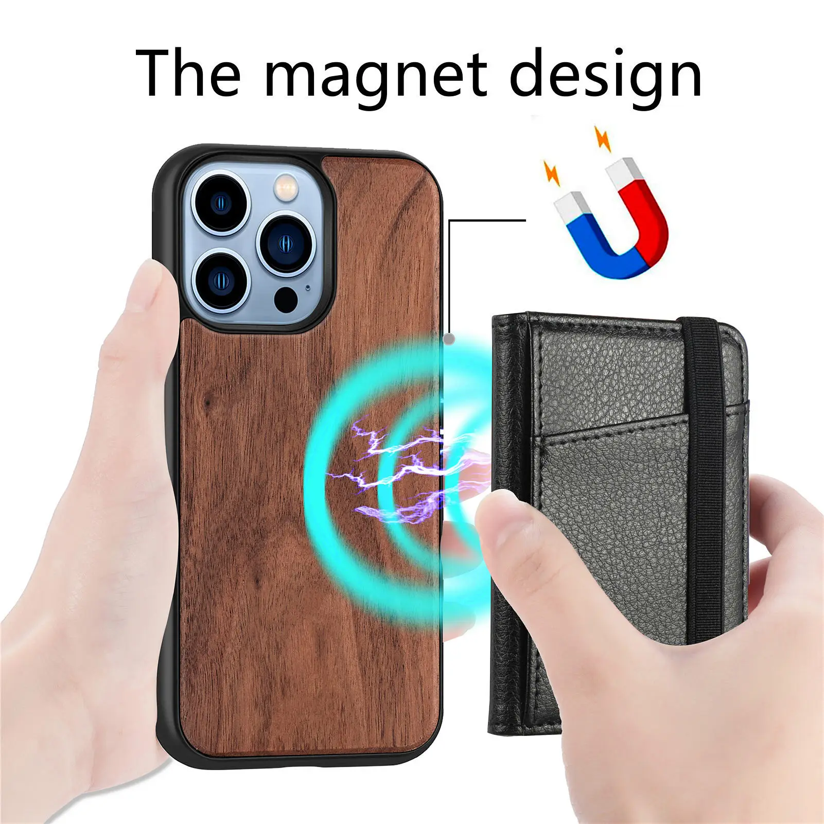 Magsafe Magnetic Card Holder Wallet Solid Wood Case for Iphone 14 13 12 series