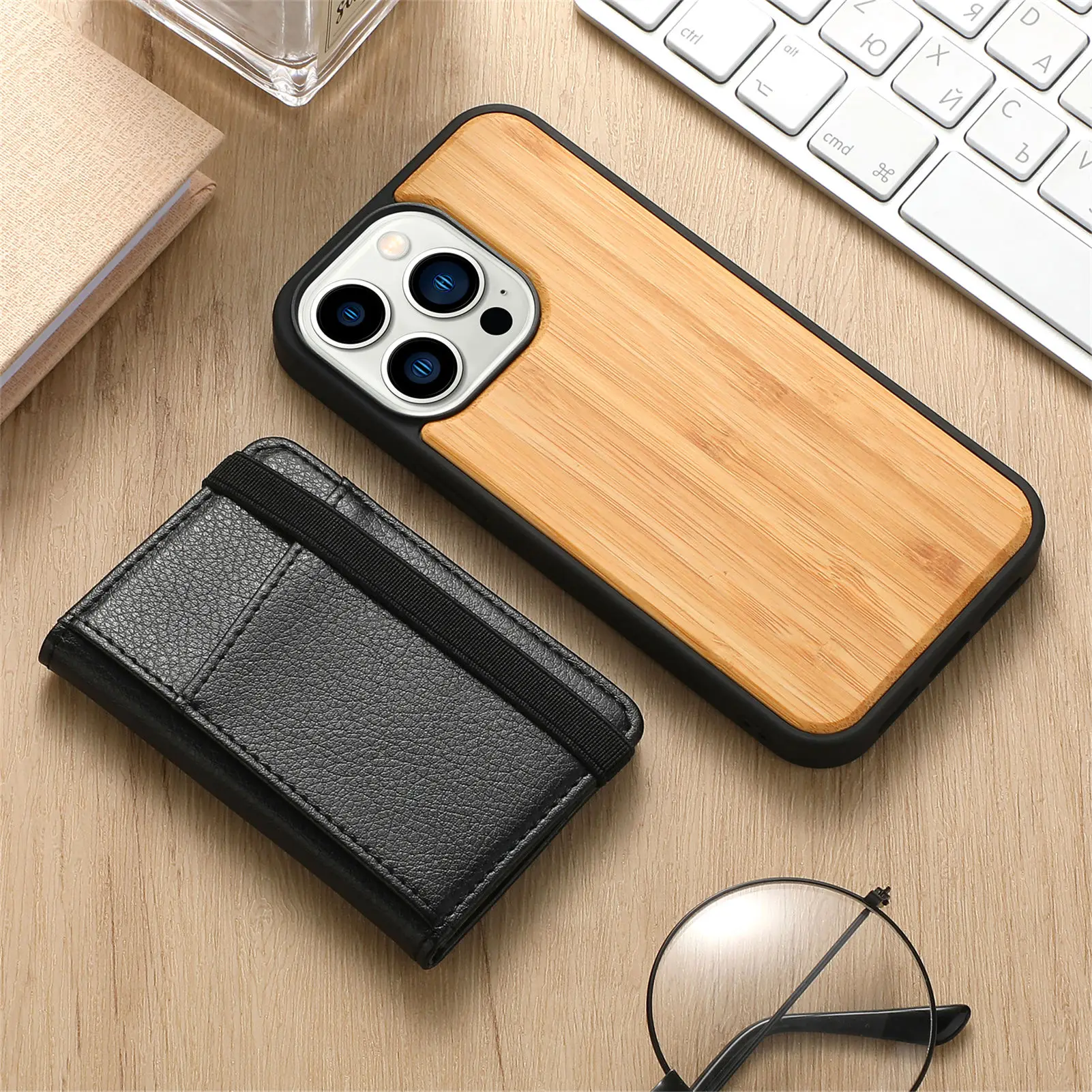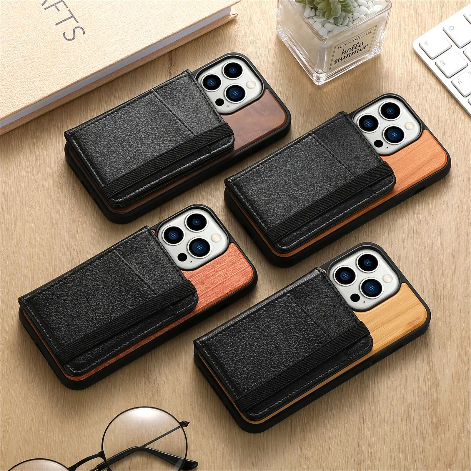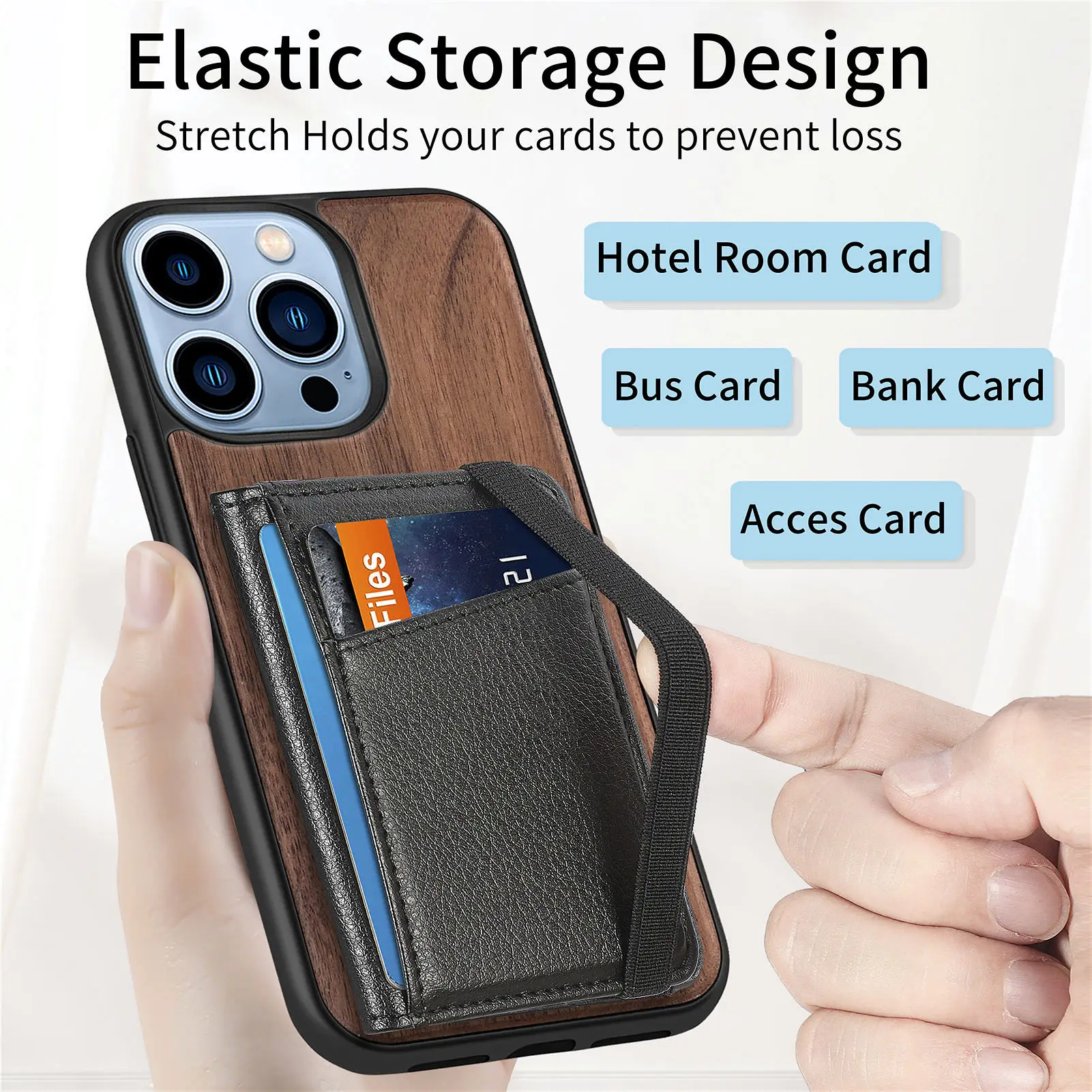 Magsafe Magnetic Card Holder Wallet Solid Wood Case for Iphone 14 13 12 series
