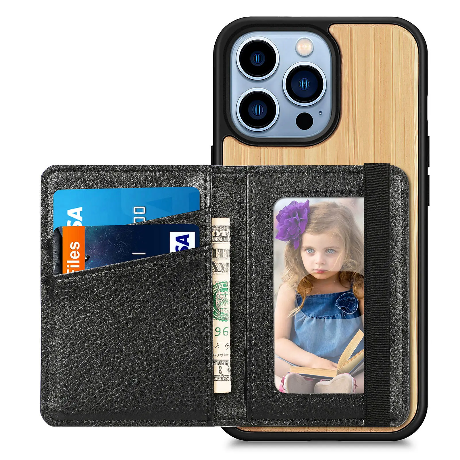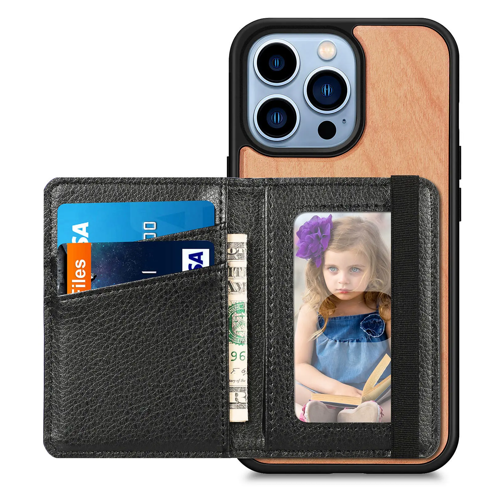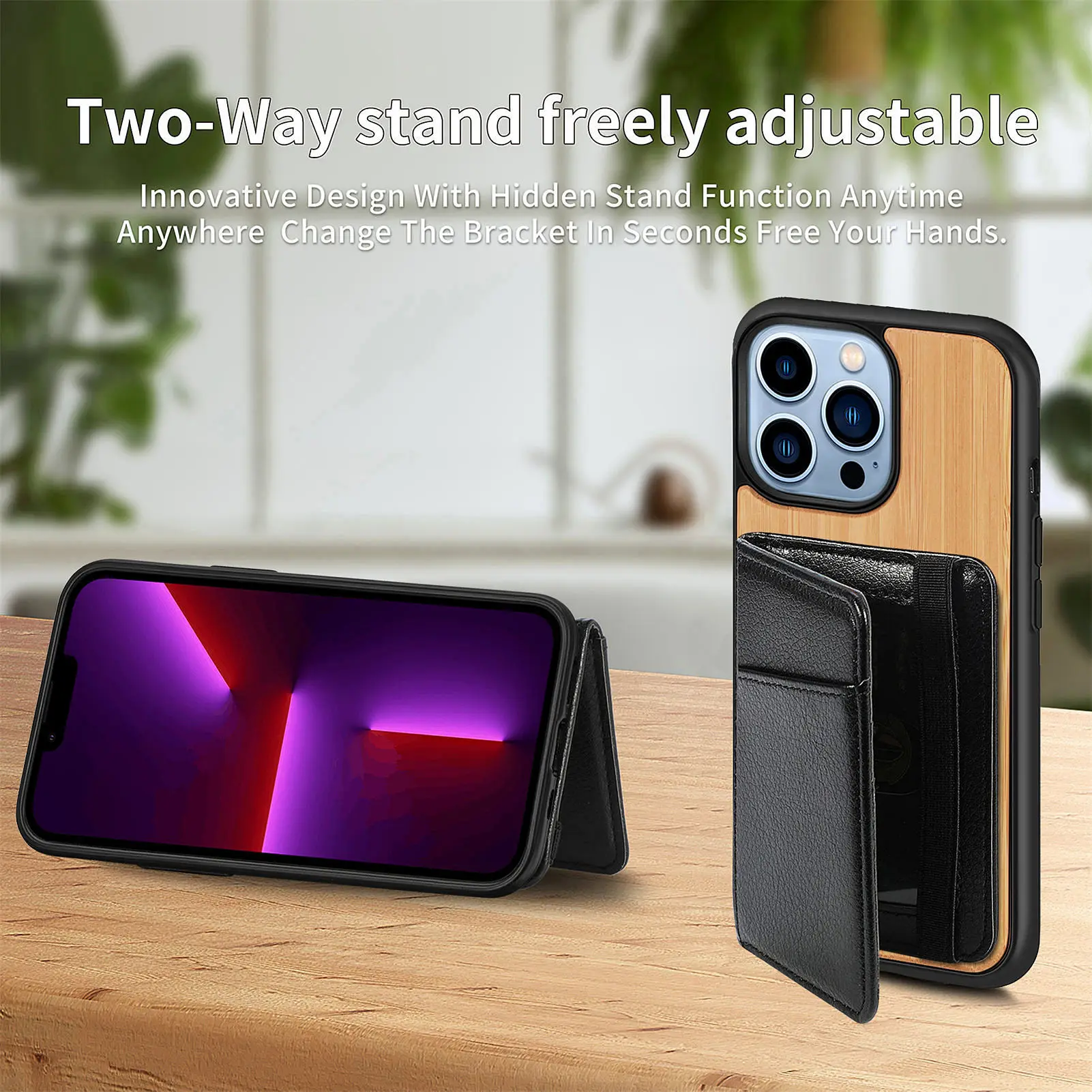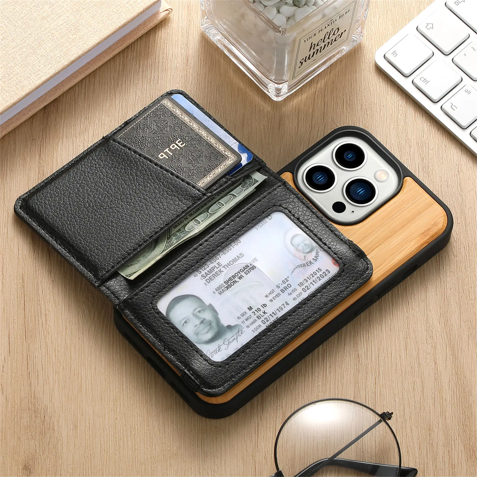 Magsafe Magnetic Card Holder Wallet Solid Wood Case for Iphone 14 13 12 series