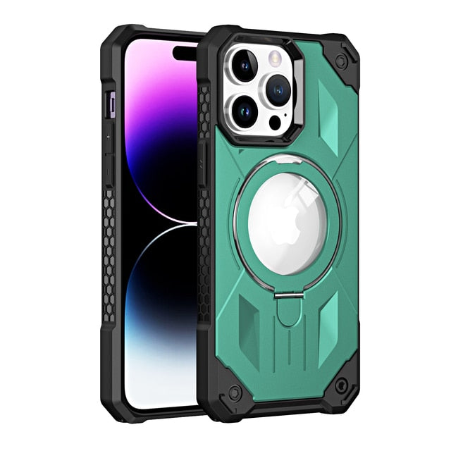 Magsafe Magnetic Soft TPU Hard PC Shockproof Armor Case with Metal Kickstand For iPhone 14 13 12 series