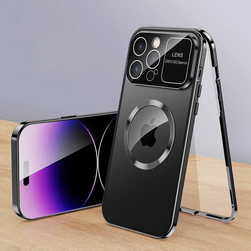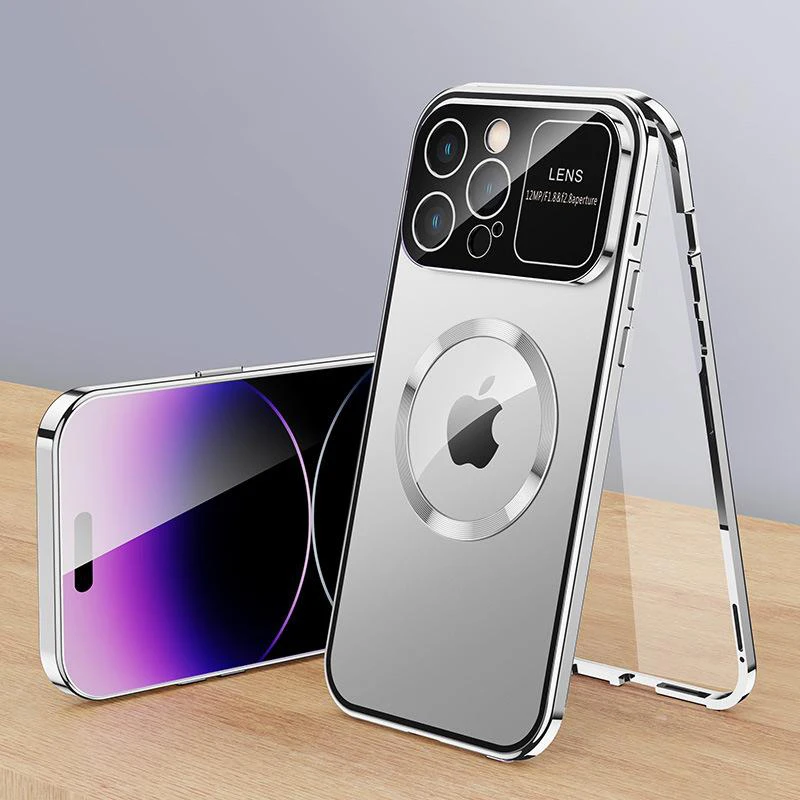 Metal Aluminum Alloy Magsafe Magnetic Adsorption 360°Full Screen Lens HD Glass Case For iPhone 14 13 12 series